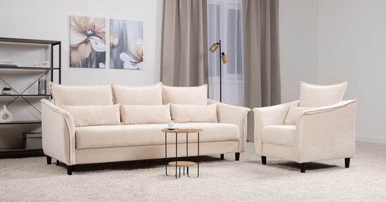 Диван-кровать прямой Дакота ТД 582 велюр Vendetta 02 кремовый, Riga 1598 z1 col 6 бежевый, Romeo 02