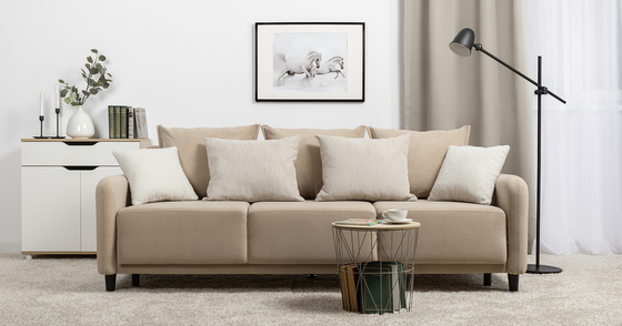 Диван-кровать прямой Оксфорд 710 композиция 3, шенилл Muza 04 светло-бежевый, модульная система