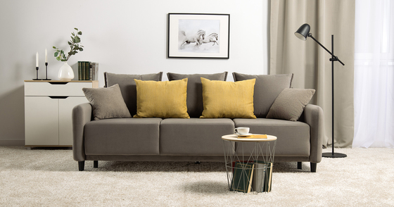 Диван-кровать прямой Дакота ТД 583 велюр Vendetta 10 серо-коричневый, Riga 1598 z1 col 34 горчичный, Romeo 03