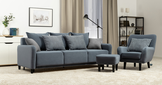 Диван-кровать прямой Дакота ТД 584 велюр Vendetta 24 синий, Riga 1598 z1 col 20 серо-голубой, Romeo 06