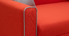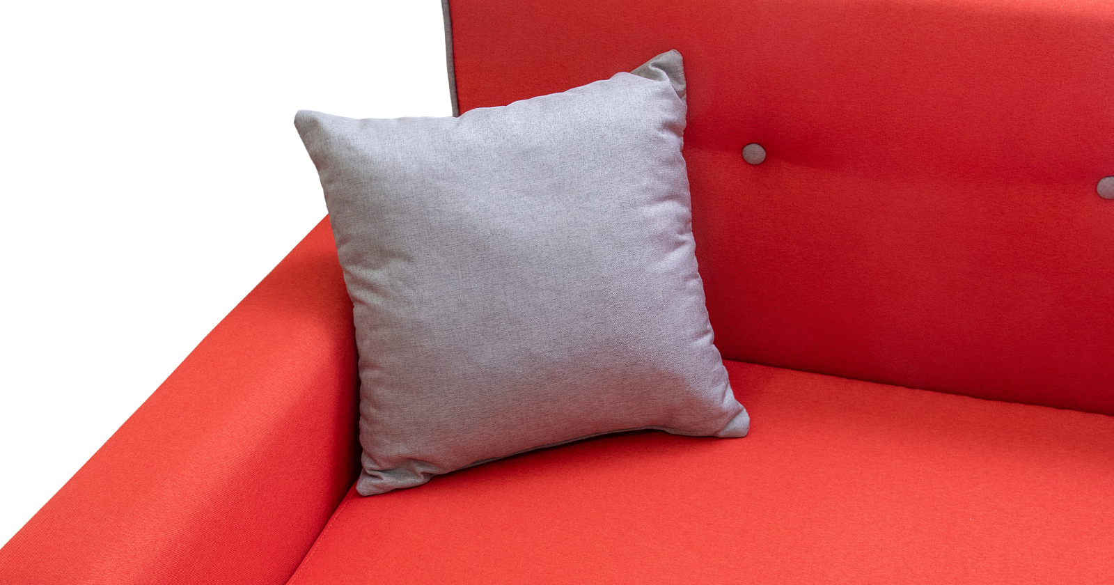 Декоративный контрастный кант по торцу спинки, торцу подлокотника, по верхнему срезу царги. Утяжки с пуговицами на спинке дивана. Две декоративные подушки в контрастной ткани.