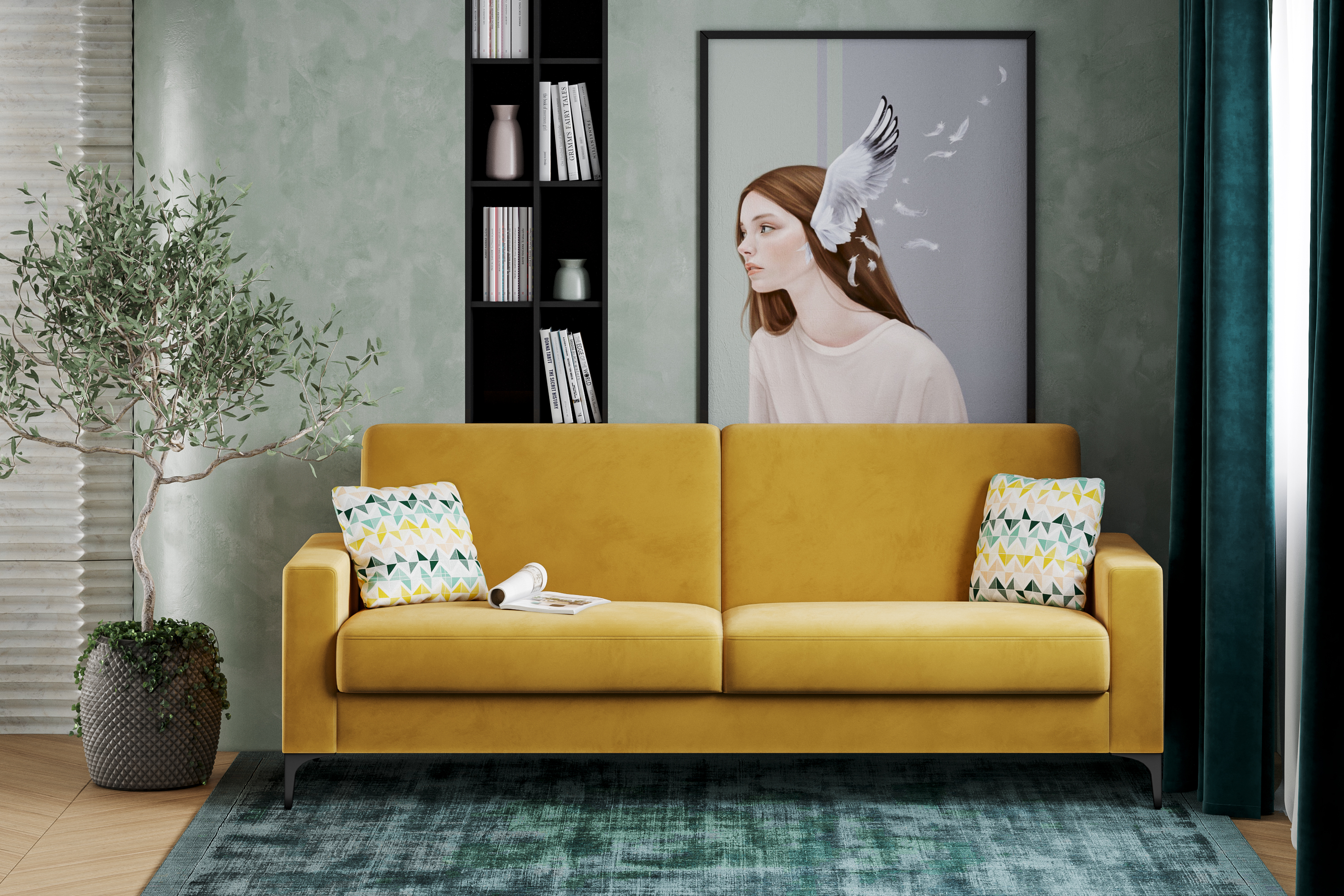 Диван-кровать прямой Алекс 3т велюр Ультра мустард горчичный