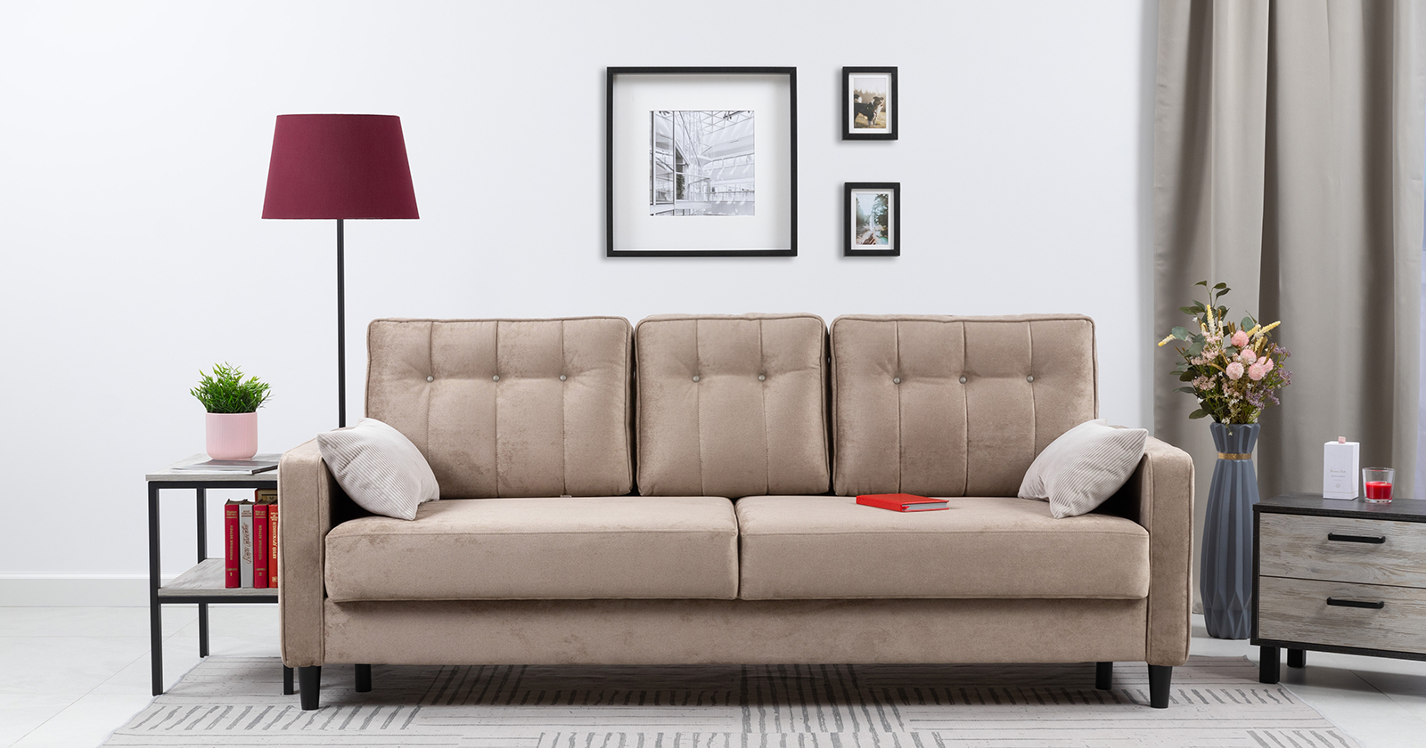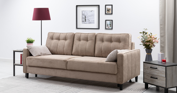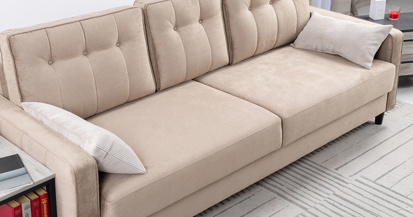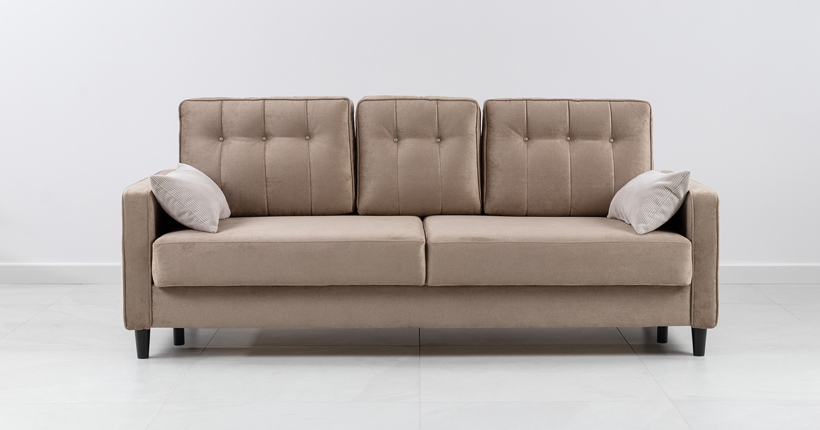 Диван-кровать прямой Арно ТД 565 велюр Лаки 04 песочный, Vertical 910 молочно-серый