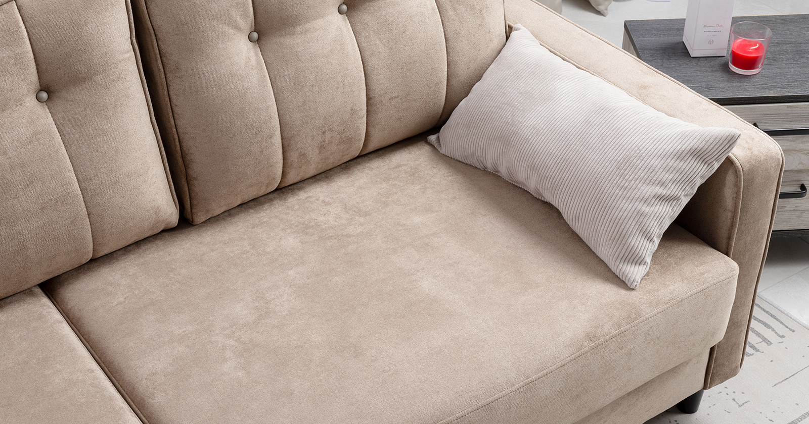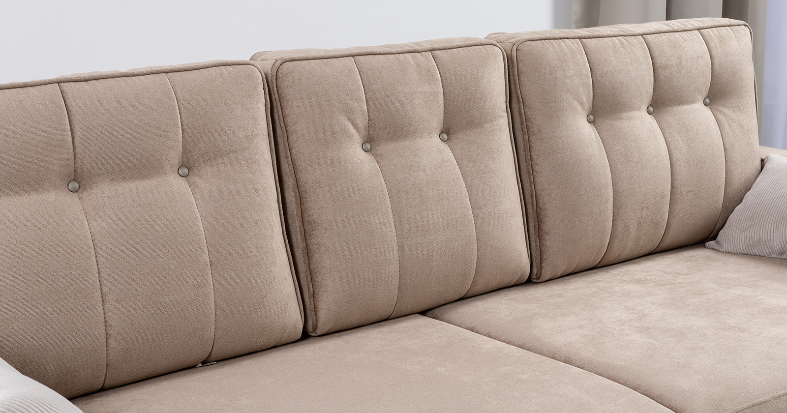 Диван-кровать угловой Арно ТД 565 велюр Лаки 04 песочный, Vertical 910 молочно-серый, сборка на любую сторону