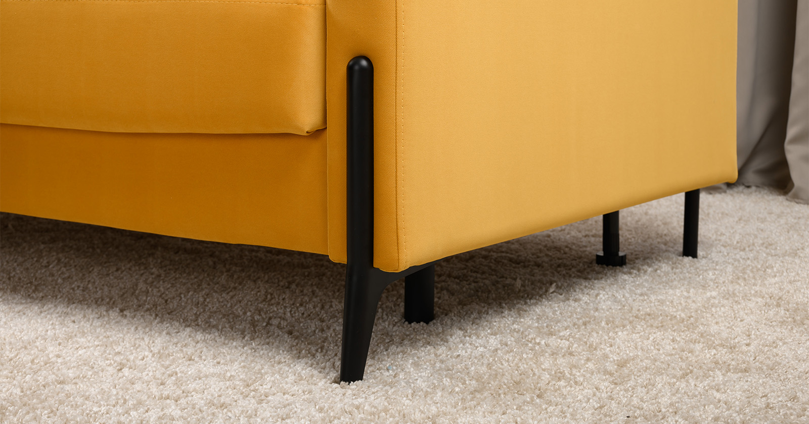Металлические опоры плавно переходят в декоративный элемент подлокотника. Декоративная утяжка по приспинным подушкам