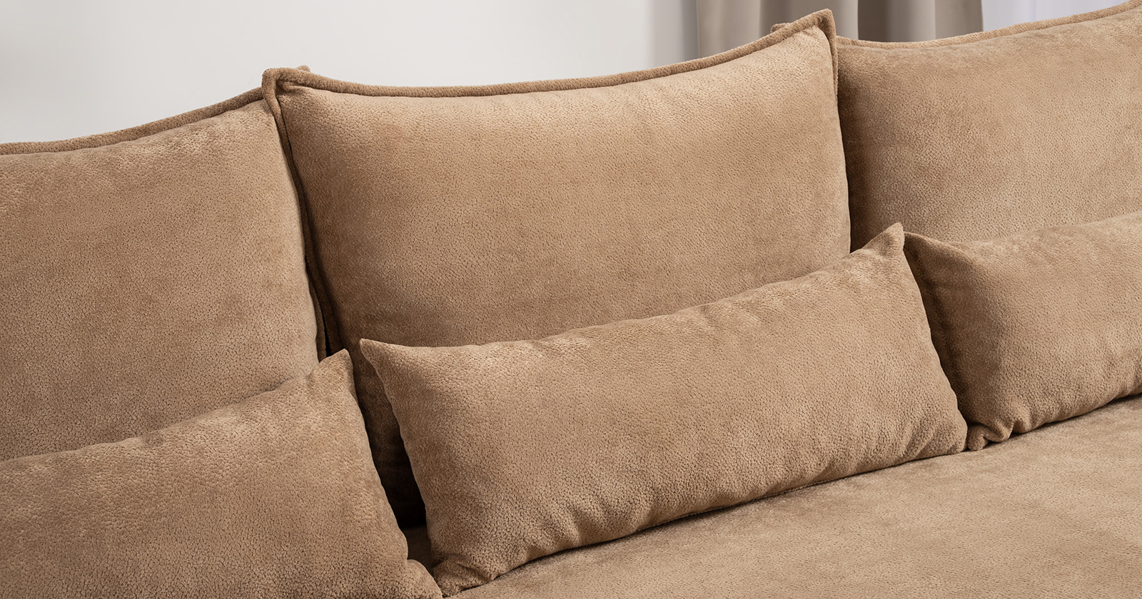 Изогнутые подлокотники в форме лепестков придают коллекции изысканный и элегантный вид, а дополнительные декоративные подушки обеспечат поддержку поясницы и помогут уютно устроиться на диване. В наполнении дивана используется высокоэластичная пена, которая адаптируется к форме вашего тела и гарантирует максимальный комфорт во время отдыха.