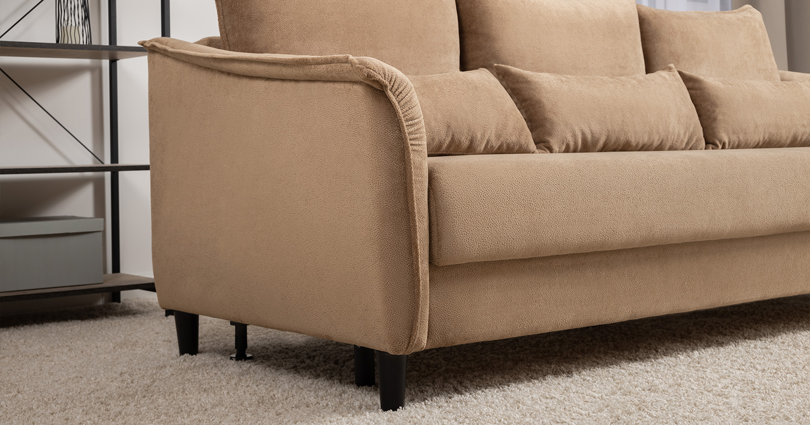 Изогнутые подлокотники в форме лепестков придают коллекции изысканный и элегантный вид, а дополнительные декоративные подушки обеспечат поддержку тела и помогут уютно устроиться на диване. В наполнении дивана используется высокоэластичная пена, которая адаптируется к форме вашего тела и гаранитует максимальный комфорт во время отдыха.