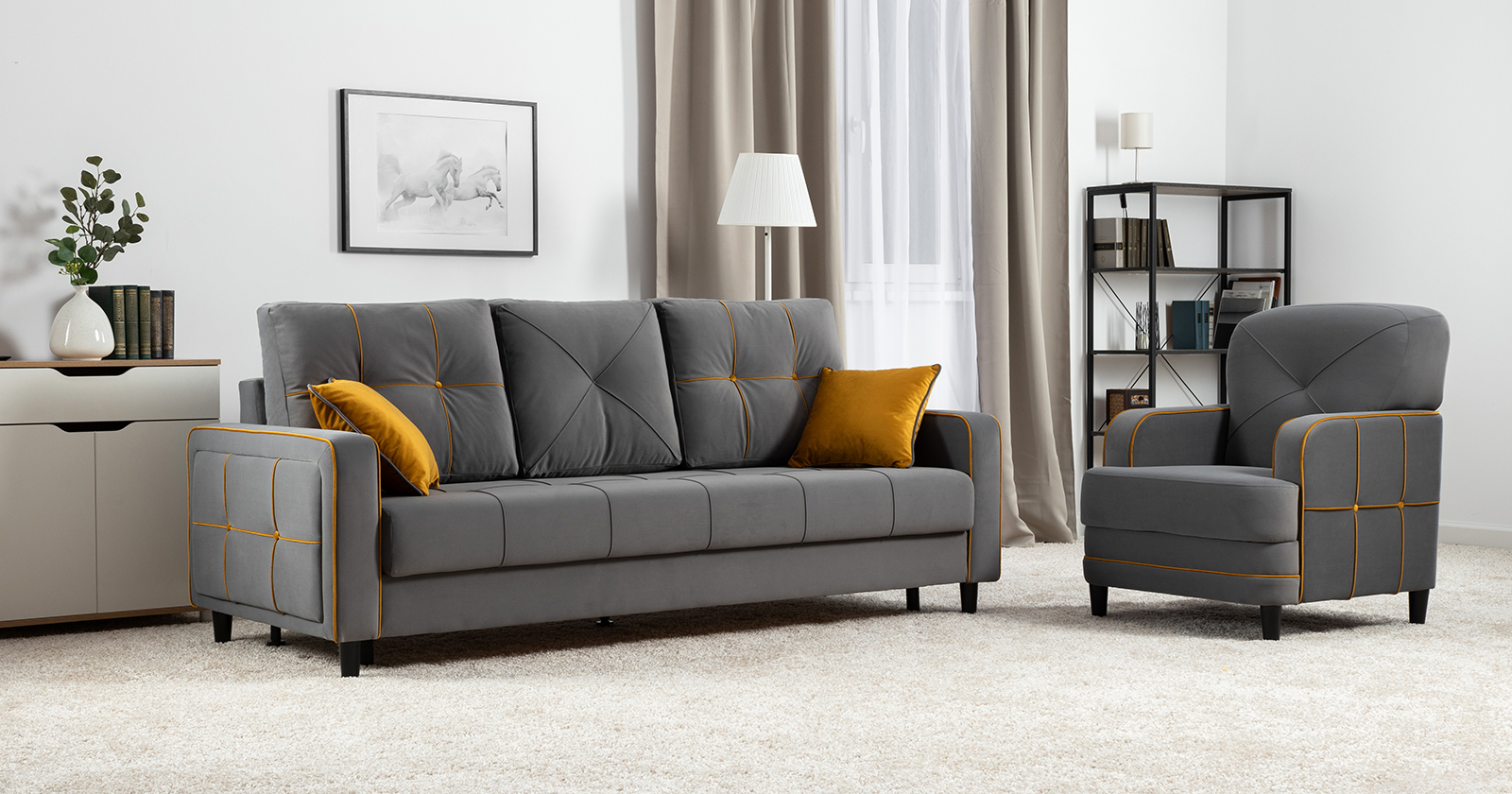 Диван-кровать прямой Черри ТД 287 велюр Irida 21 серый, Эвита умбер горчичный