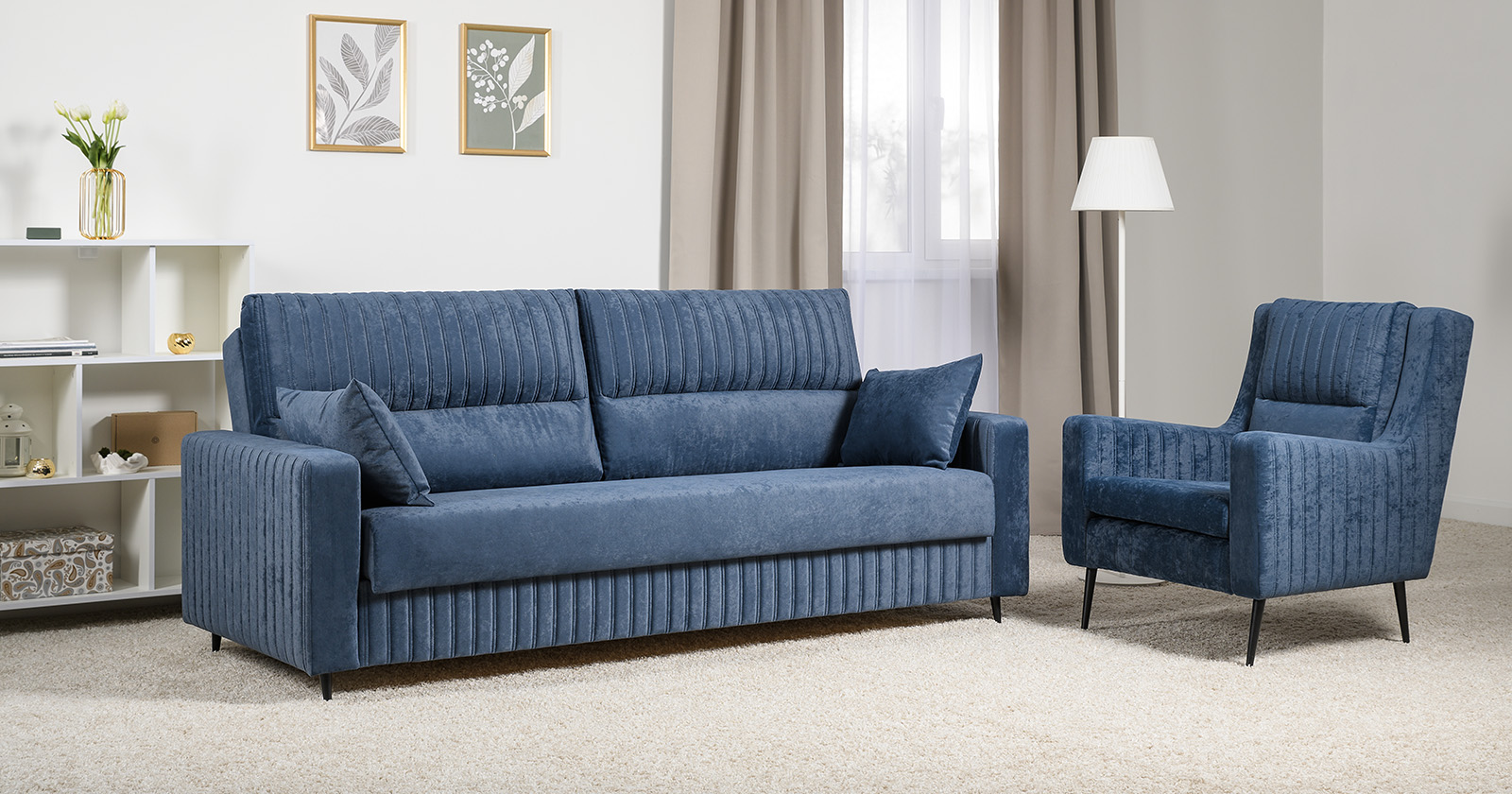 Диван-кровать прямой Изабель ТД 739 велюр Романс нейви темно-синий