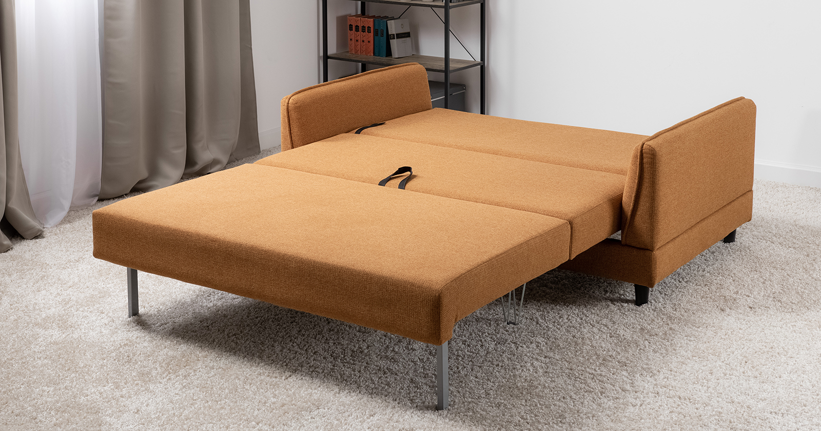 Лаконичный дизайн с деревянными ножками и узкими подлокотниками удачно дополнит не только интерьер гостиной, но и кабинета, и кухни. Кроме того, диван Макс позволяет организоввть спальное место в ограниченном пространстве.