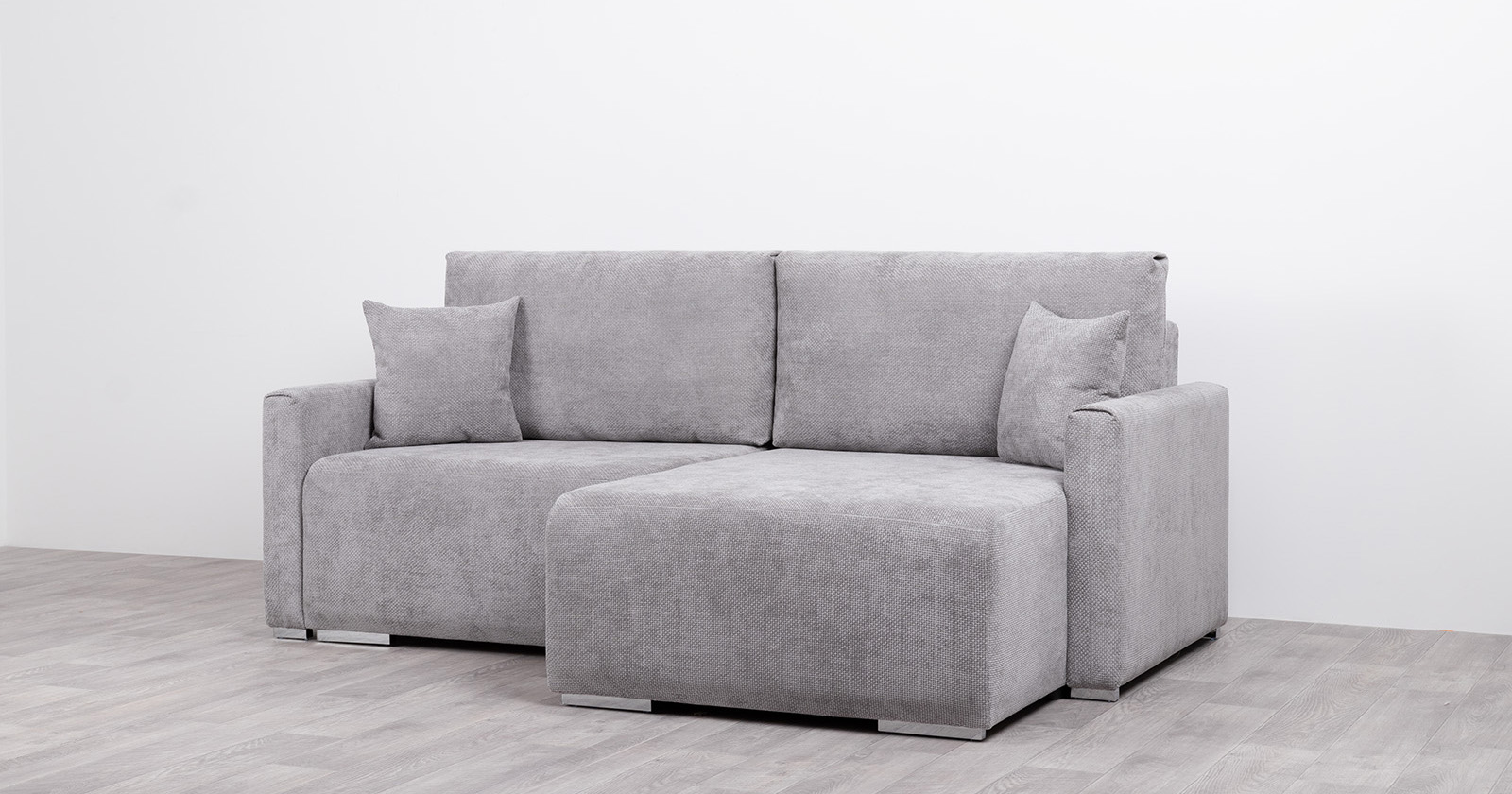 Диван-кровать угловой Тэдди 1506 композиция 2, букле Pique 011 серый, модульная система, сборка на любую сторону