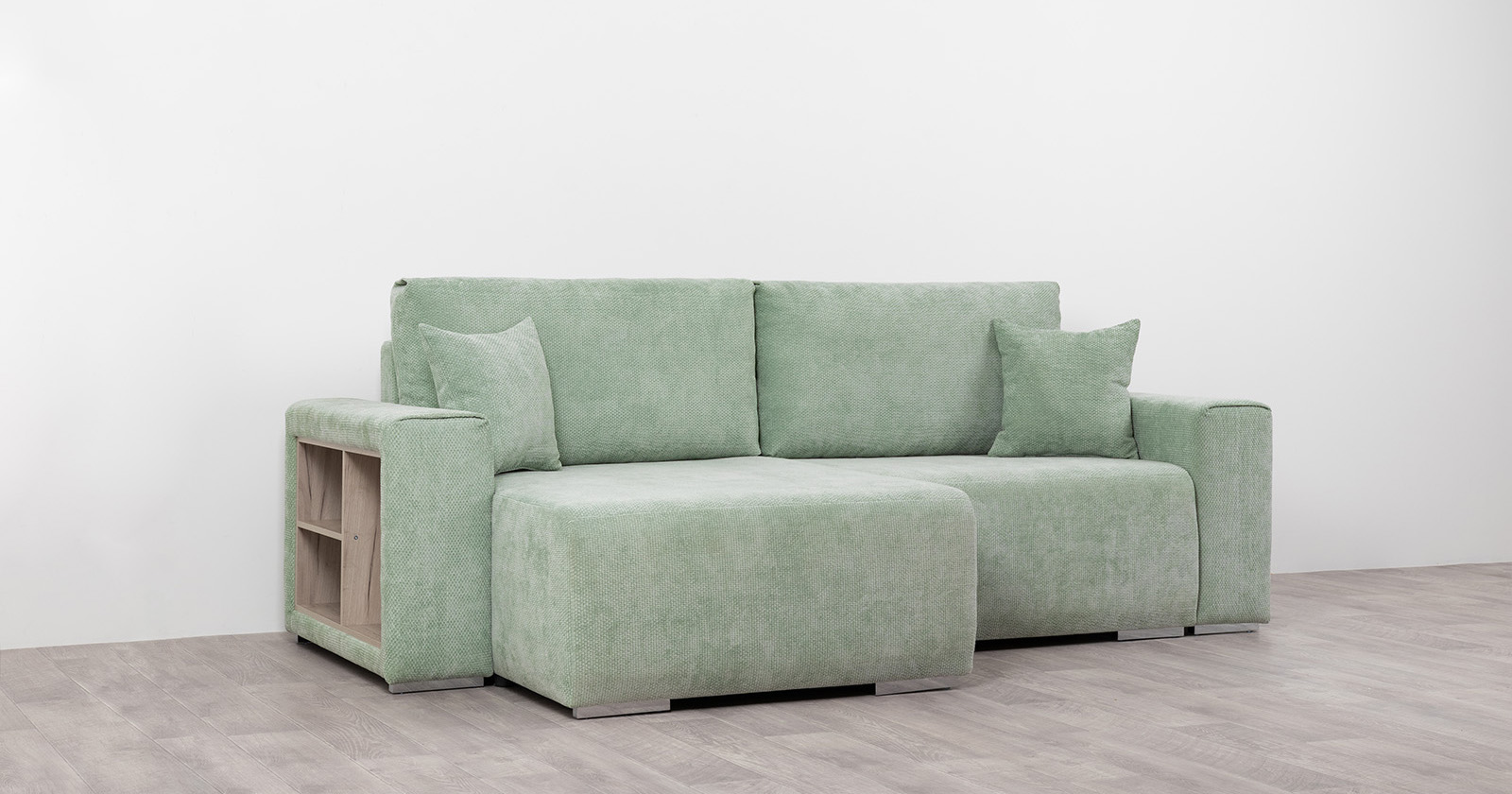 Диван-кровать угловой Оксфорд 715 композиция 4, шенилл STORM 9 мятный, модульная система, сборка на любую сторону