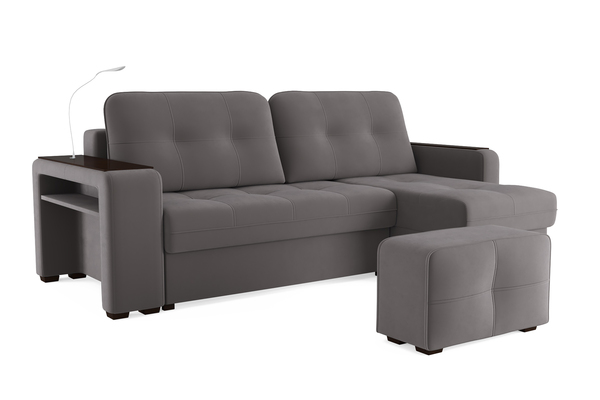 Баланс между эстетикой и функциональностью — основное требование к современной мебели. Мягкая мебель должна быть не просто красивой, но прежде всего удобной и функциональной. Особенно если речь идет о маленьких квартирах, где гостиная может быть одновременно и спальней, и кабинетом. С этой задачей прекрасно справится диван «SMART 4». Уникальный дизайн делает модель по-настоящему универсальной. Одна боковина оснащена карманом для хранения мелочей и гаджетов, другая боковина совмещает одновременно: рабочую поверхность, за счет широкой накладки, двойной usb - порт и портативную лампу точечного света, которая входит в комплект. Добавить контрастных деталей в интерьер поможет пуф, интегрированный в подлокотник. Этот вариант для современных людей, которые ценят комфорт и удобство отдыха.