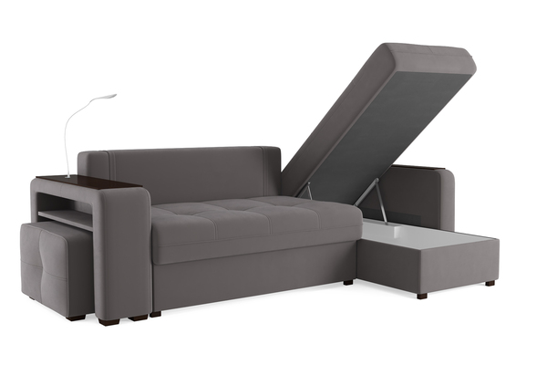 Диван-кровать угловой SMART 4 правый, велюр Velutto 19 темно-серый (Б4-2Т-1Пф-Б3)
