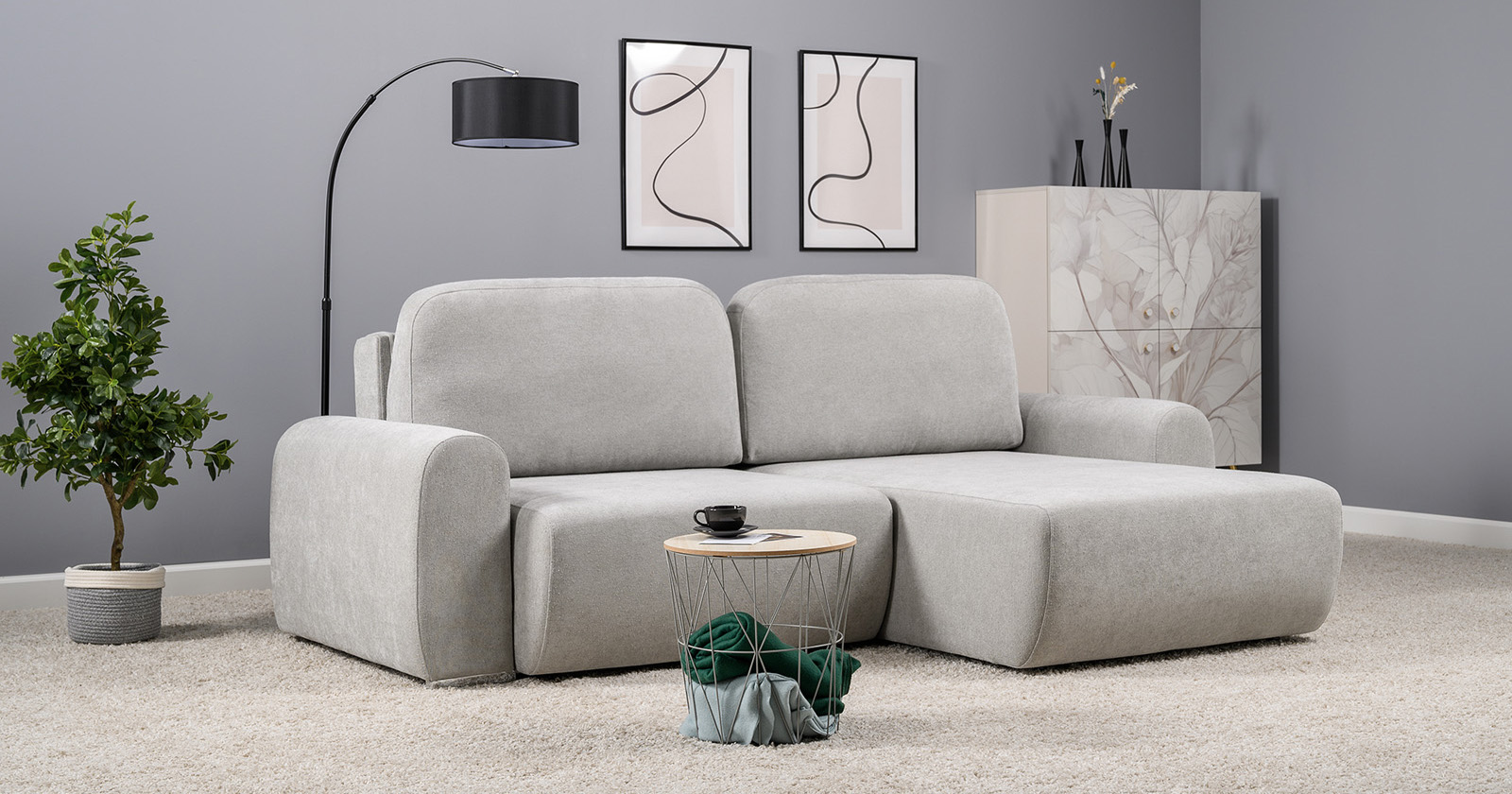 Диван-кровать угловой Тэдди 1506 композиция 2, букле Pique 011 серый, модульная система, сборка на любую сторону