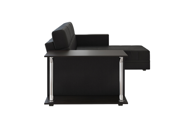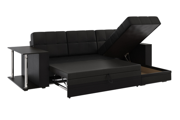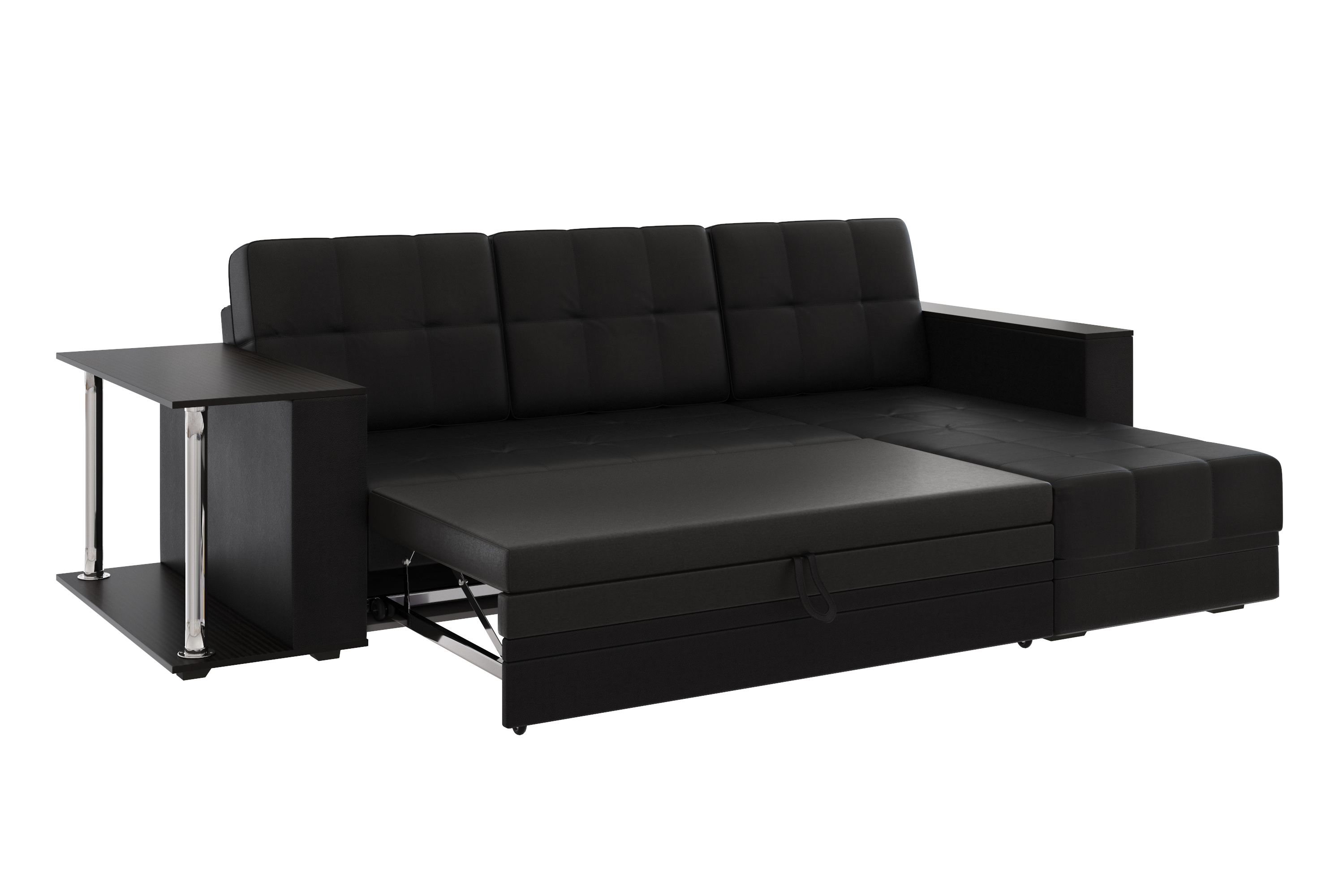 Диван-кровать угловой Атлант кожзам черный со столиком Венге со спальным местом (сборка на любую сторону)