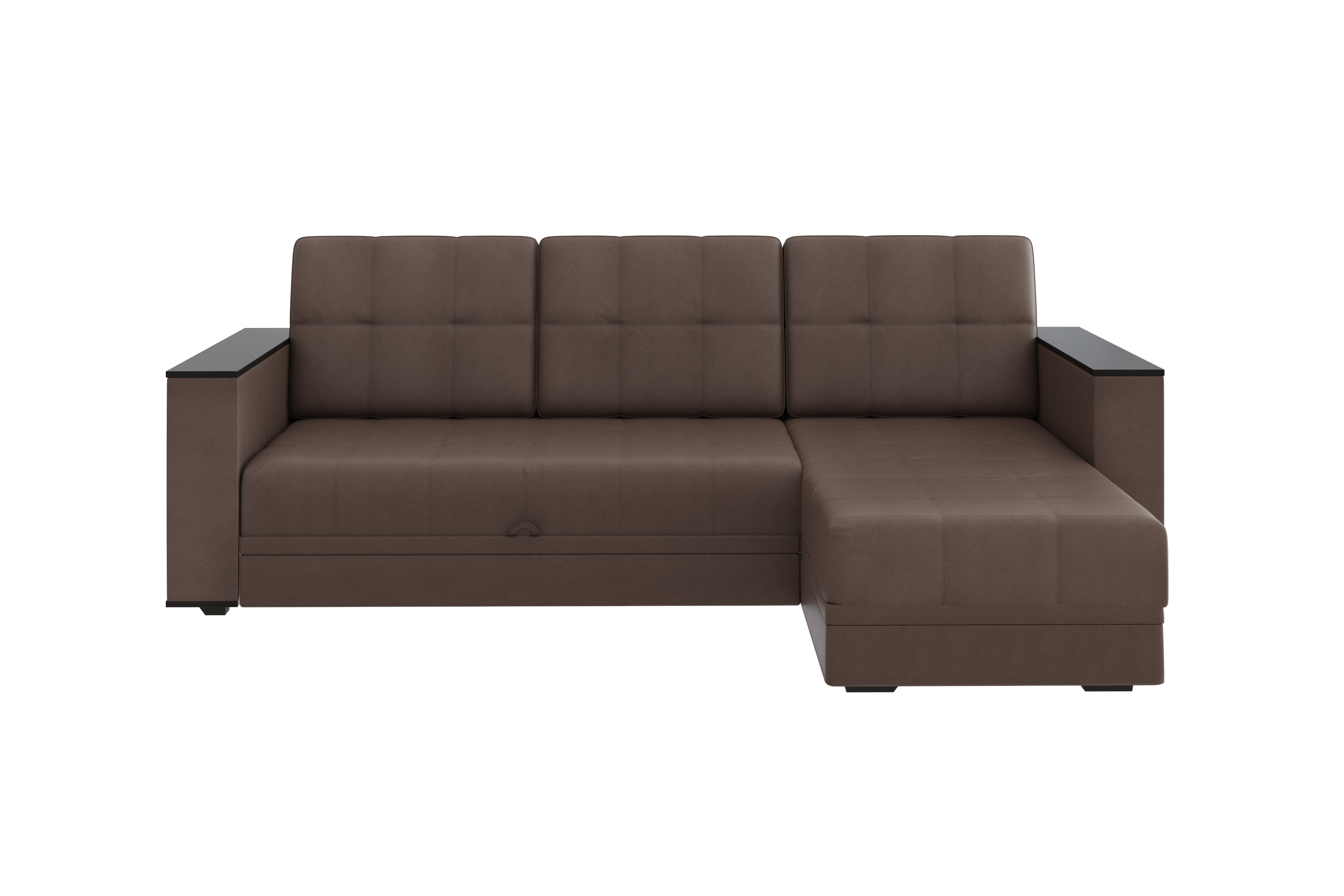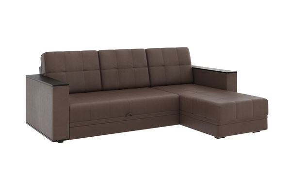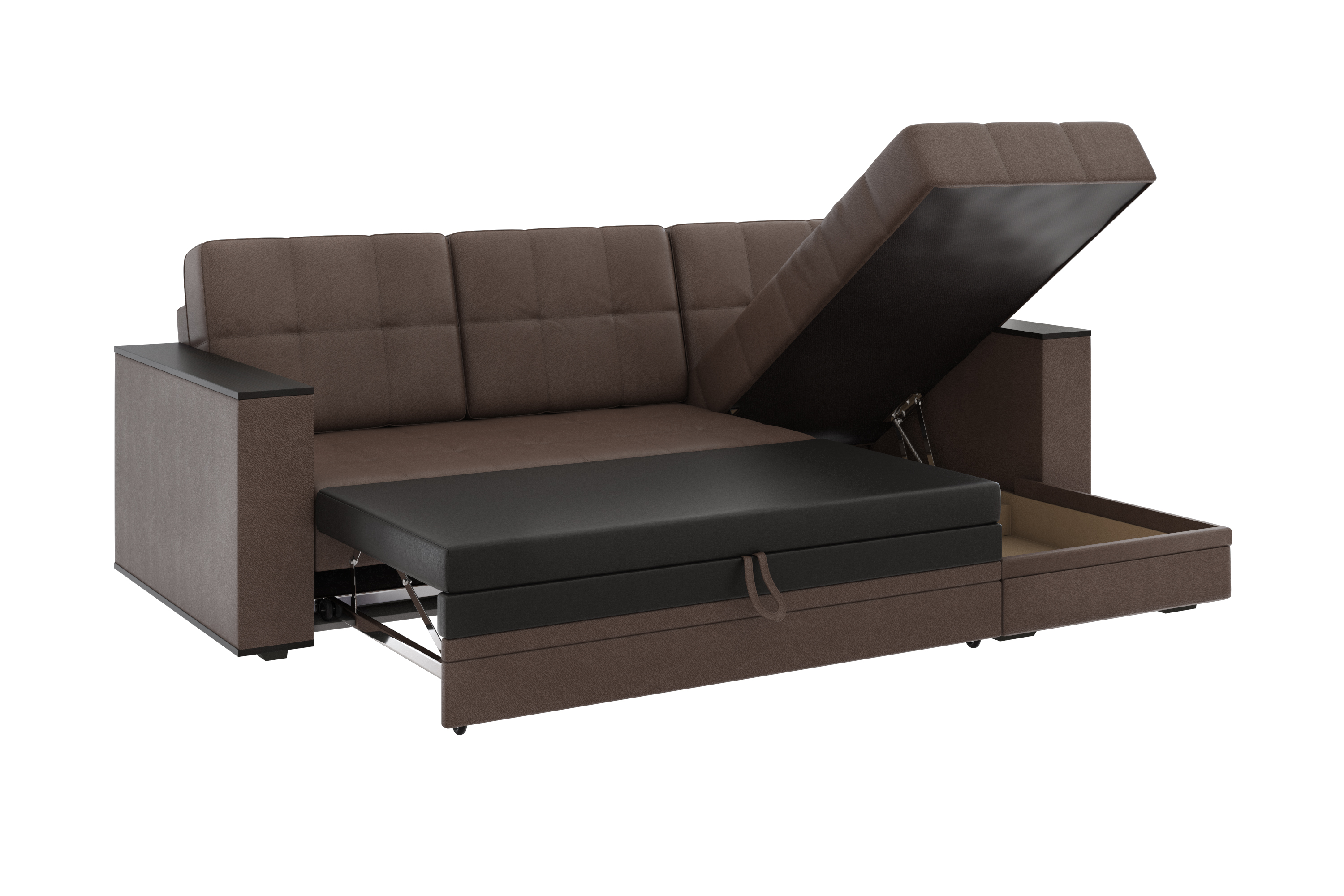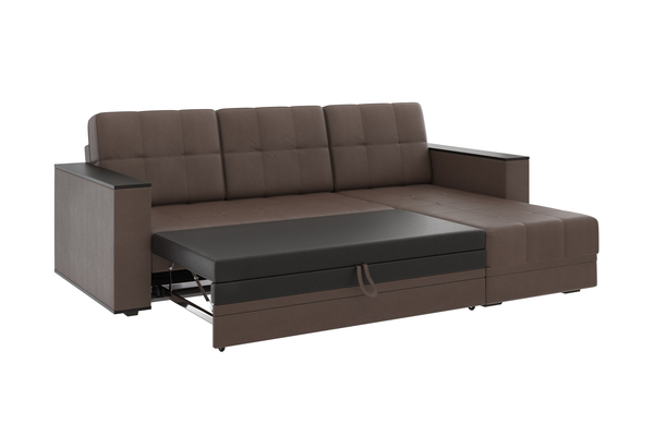 Диван-кровать угловой Атлант кожзам коричневый со спальным местом (сборка на любую сторону)
