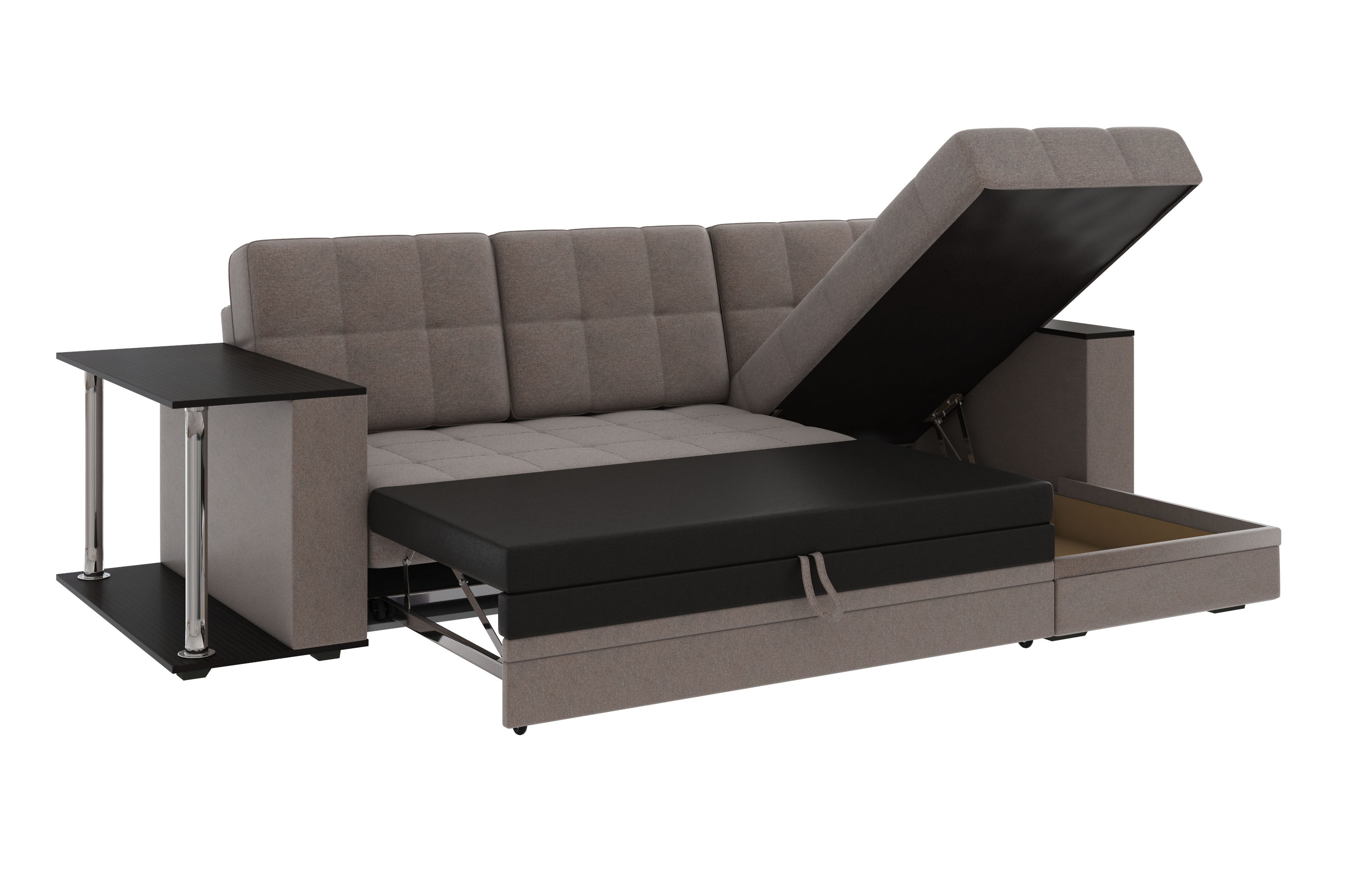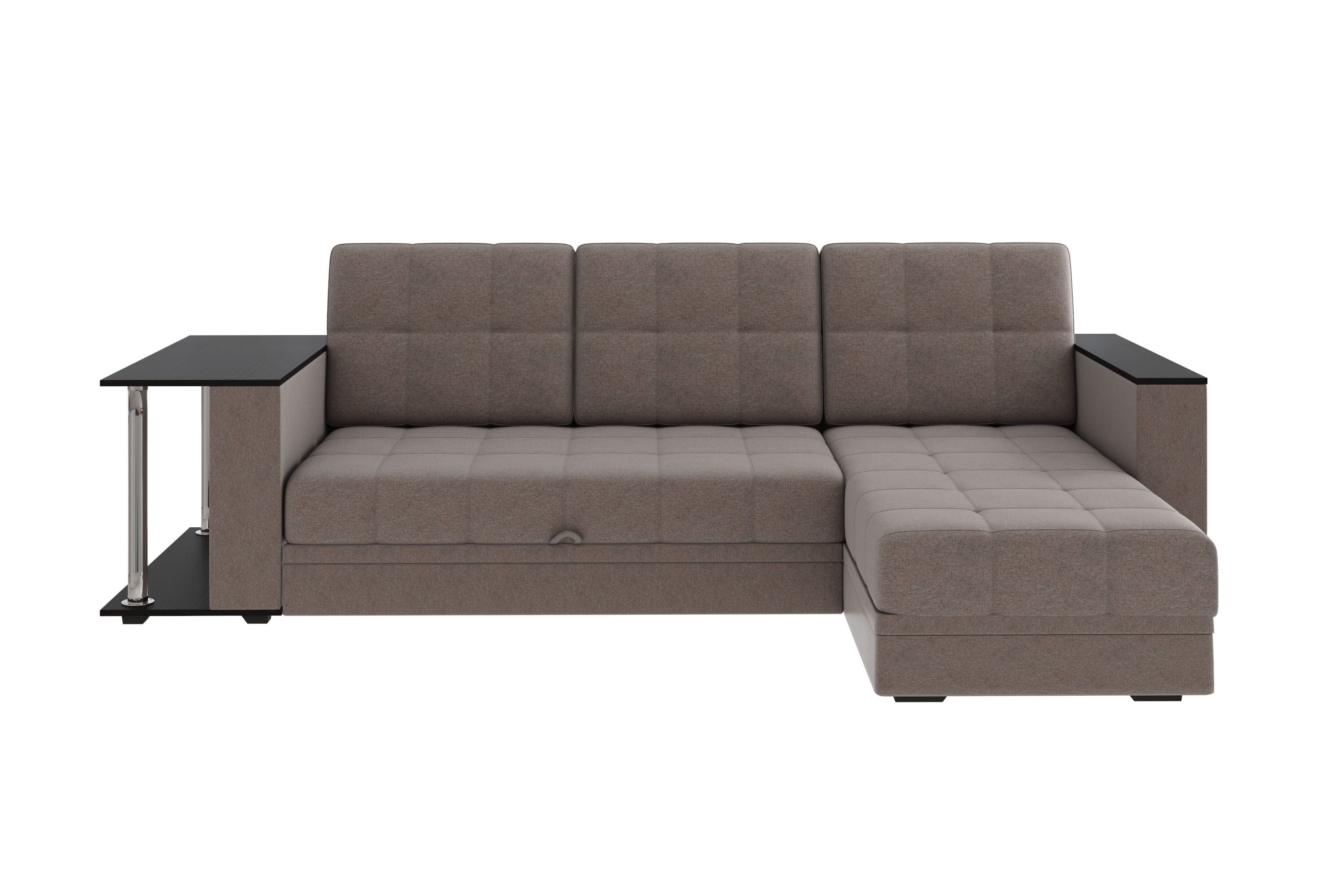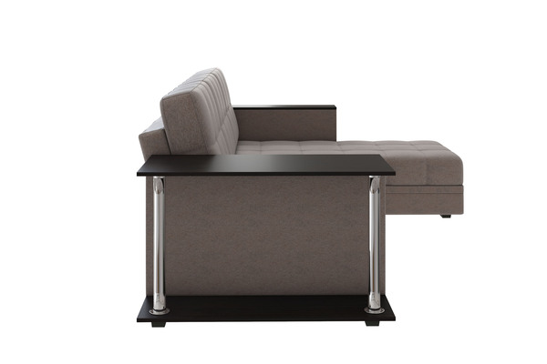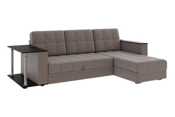 Диван-кровать угловой Атлант ткань рогожка темно-бежевый (кофе) со столиком Венге со спальным местом (собирается на любую сторону)