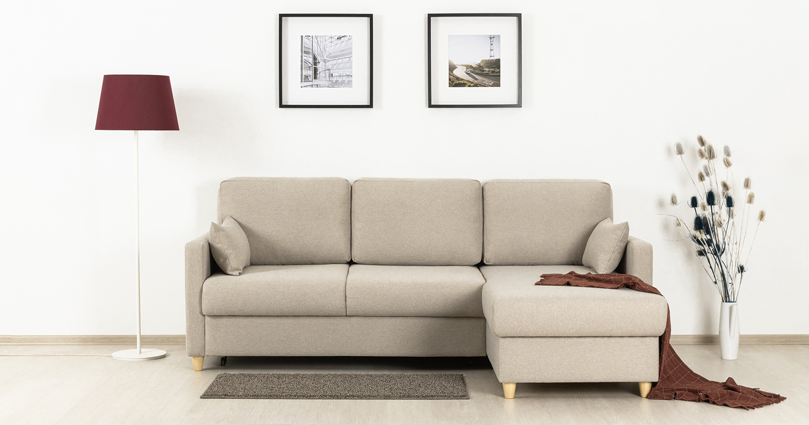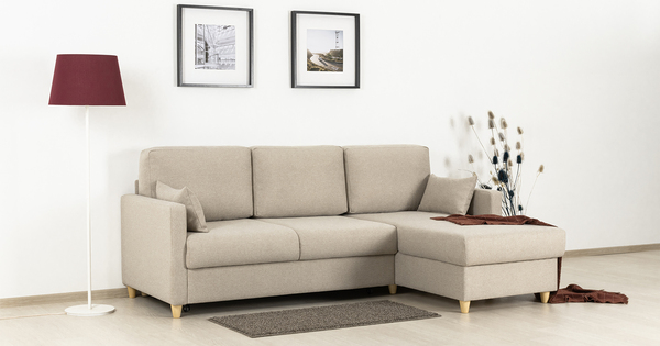 Диван-кровать угловой SMART 1 левый, велюр Velutto 05 бежевый (1Пф-2Т)