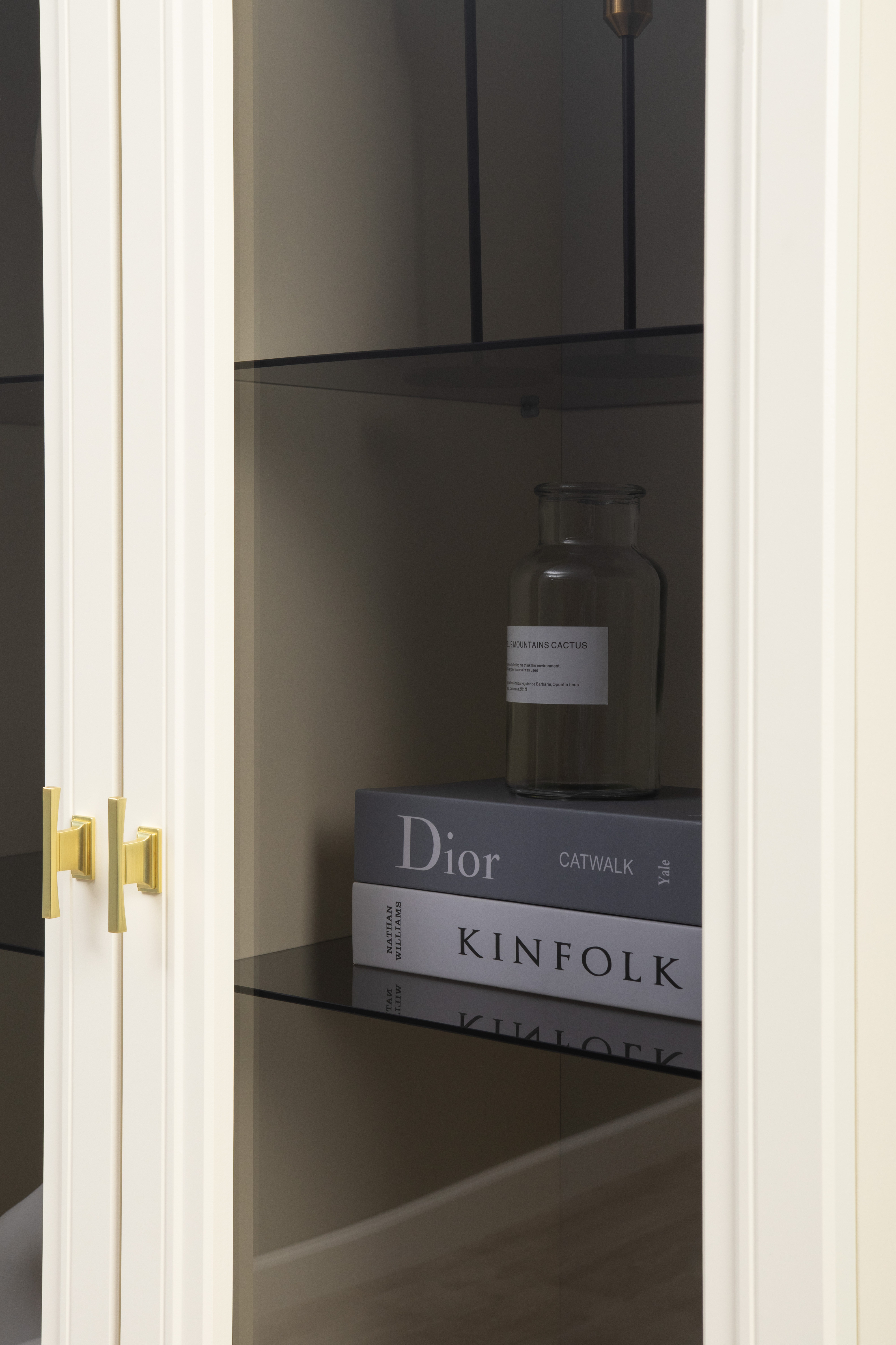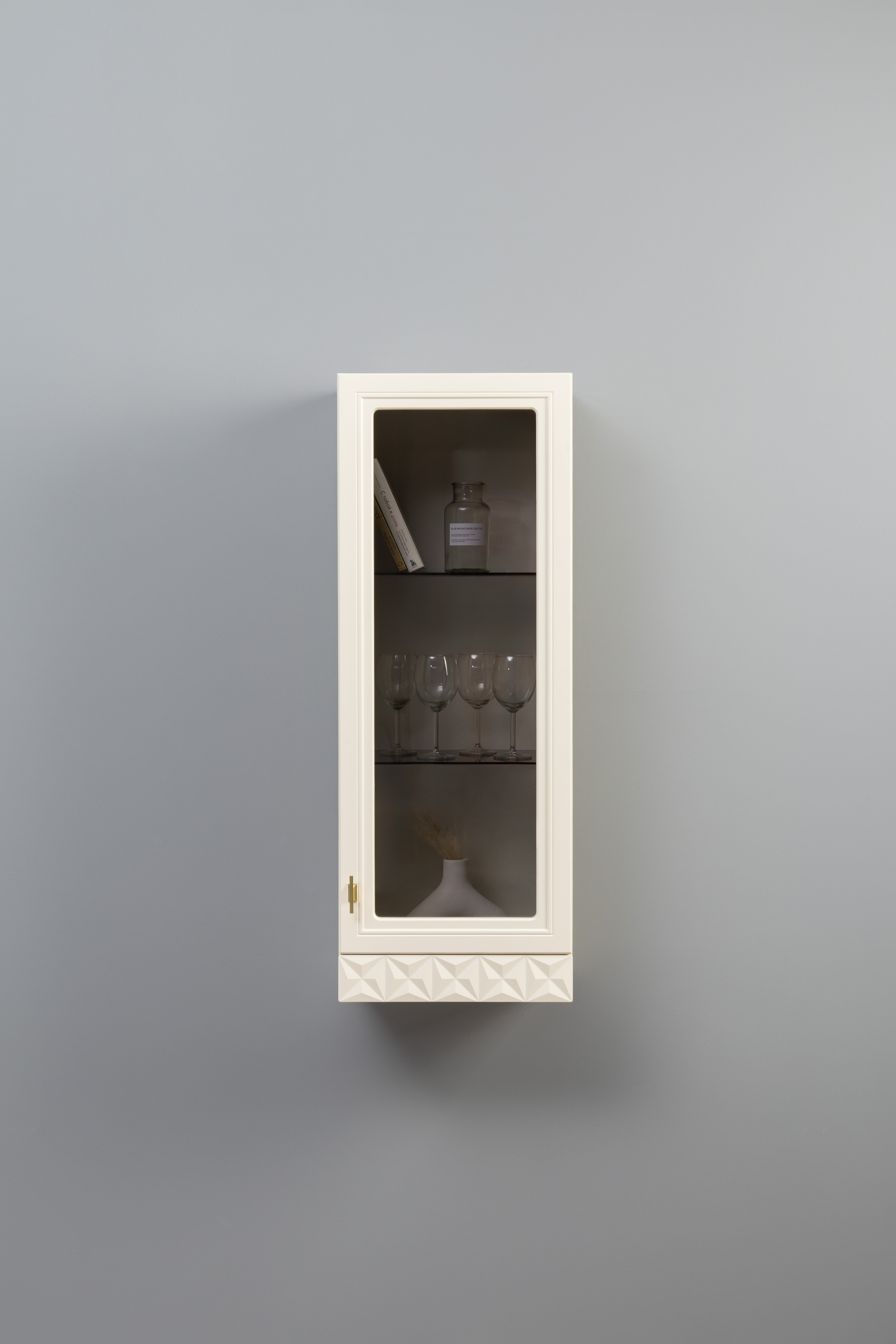 Шкаф-витрина Марион 16.397.01 слоновая кость С341 PE, слоновая кость 6898 ПВХ (собирается на любую сторону)