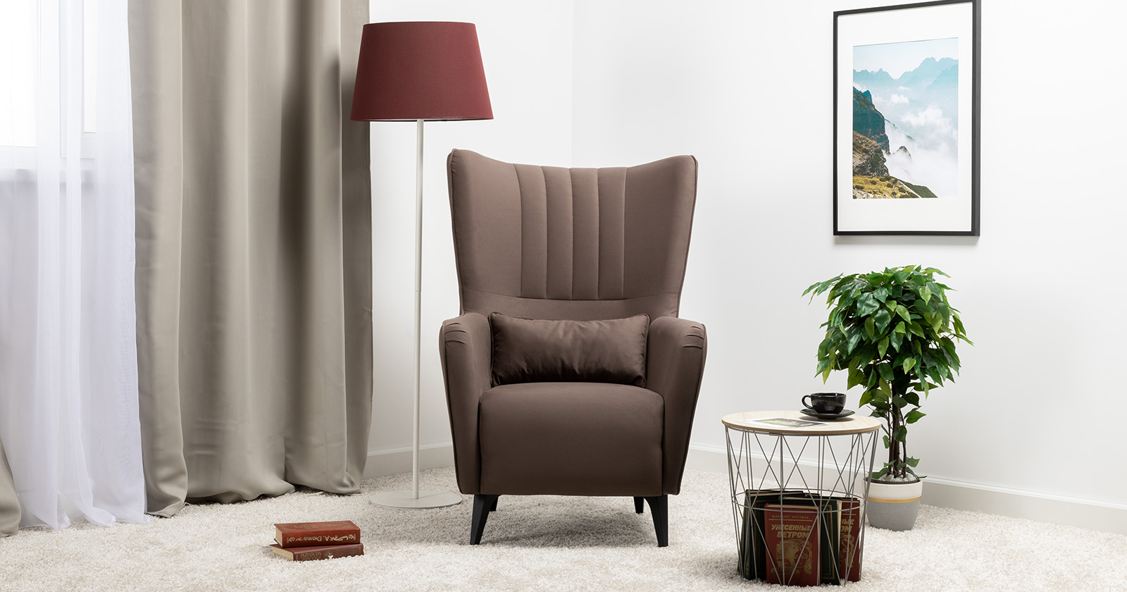 Классическое каминное кресло в современном прочтении. Элегантное кресло дополнит диван Ноэль или поможет организовать уголок для отдыха в гостиной, спальне или на лоджии. Высокая спинка с поясничной подушкой равномерно распределяет нагрузку на позвоночник, что позволяет качественно отдохнуть и расслабиться.