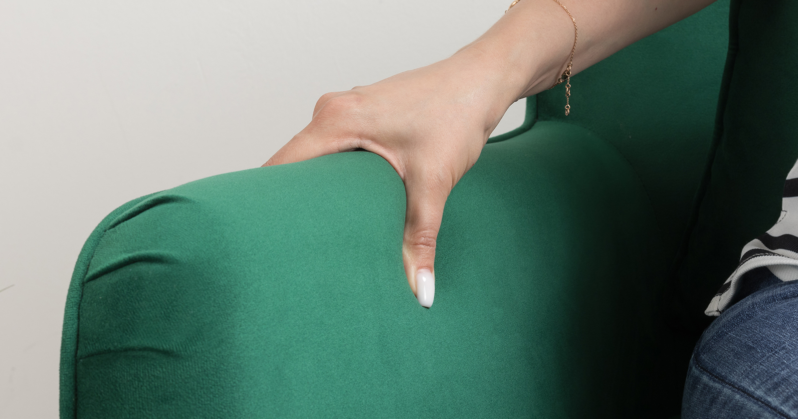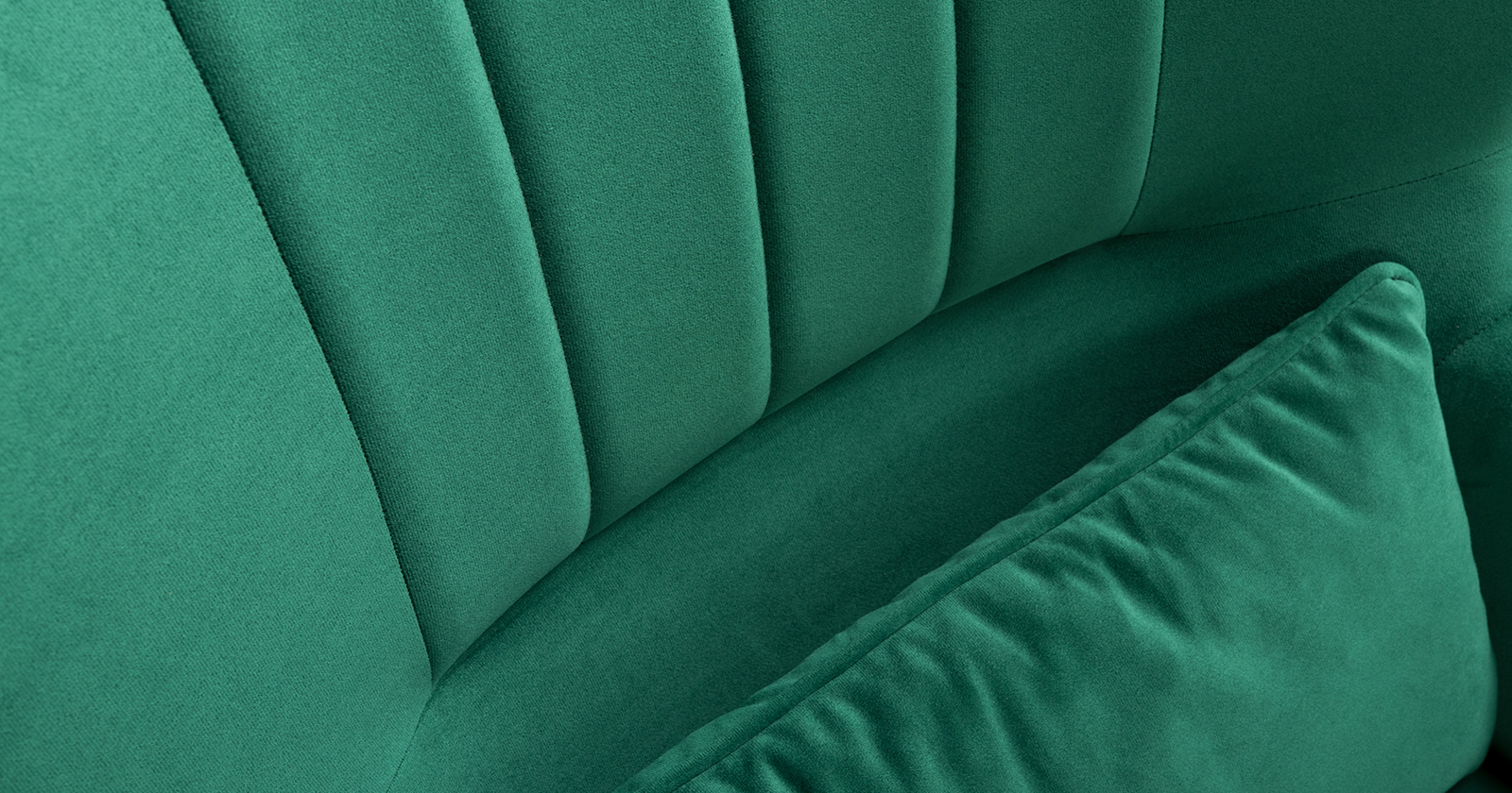 Вертикальная объемная стежка в средней части спинки; кант на спинке, подлокотниках и декоративной подушке