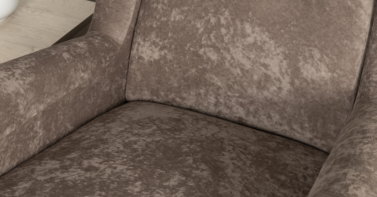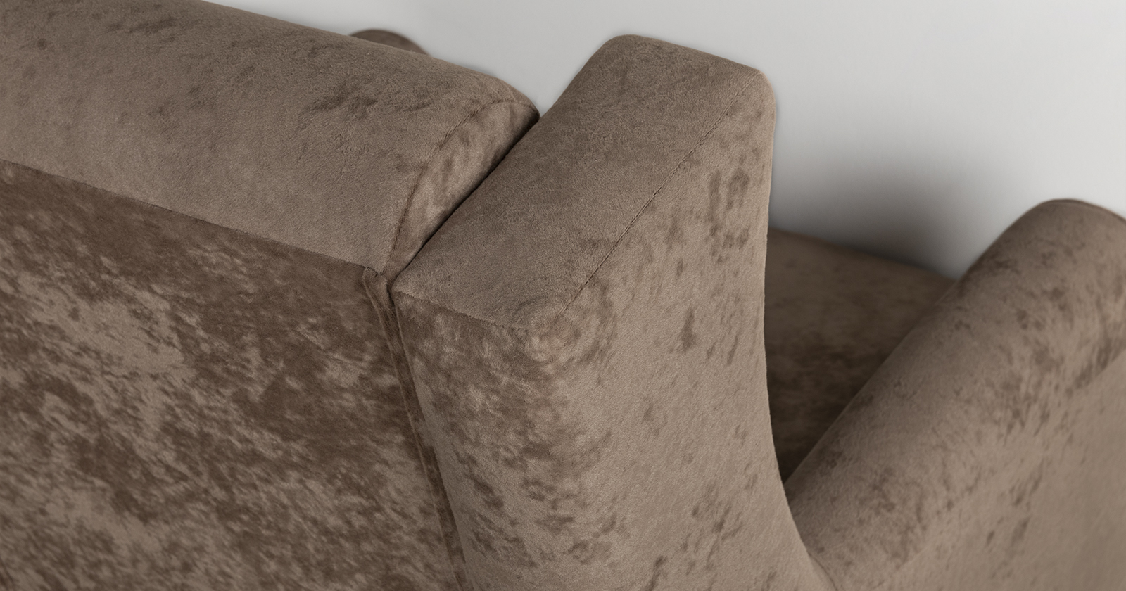 Выполнен в модном мягком велюре ROMANCE оригинальной фактуры. Ткань легко чистится, устойчива к зацепам, обладает повышенной износостойкостью. Благодаря особой технологии гладкого крашения Frozen Flower на поверхности ткани присутствует легкий краш–эффект, подчеркивающий невероятно мягкую фактуру ткани.