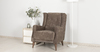 Декоративный кант из основной ткани по переднему торцу подлокотника; Утяжка спинки на 2 декоративные пуговицы из основного материала; Декоративный элемент царги из материала-компаньона.