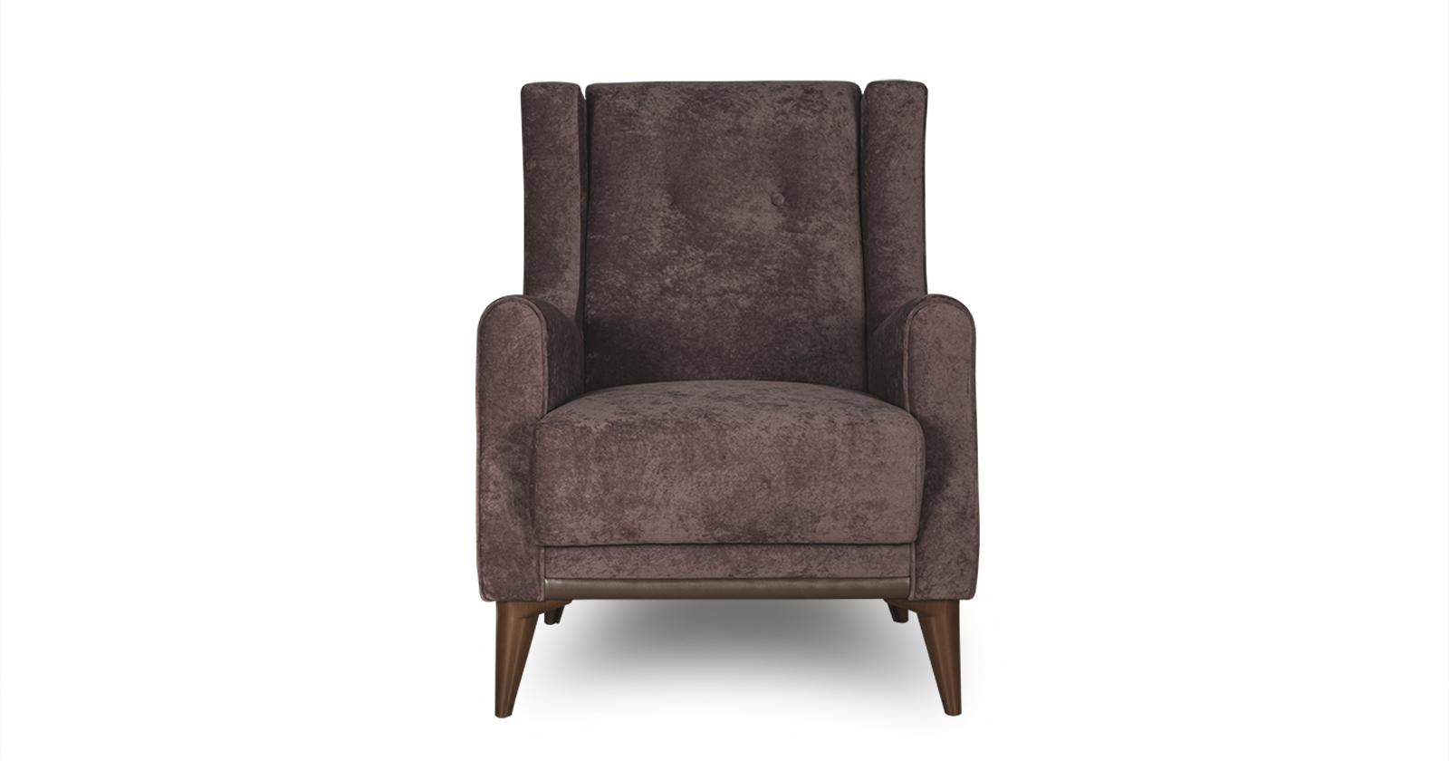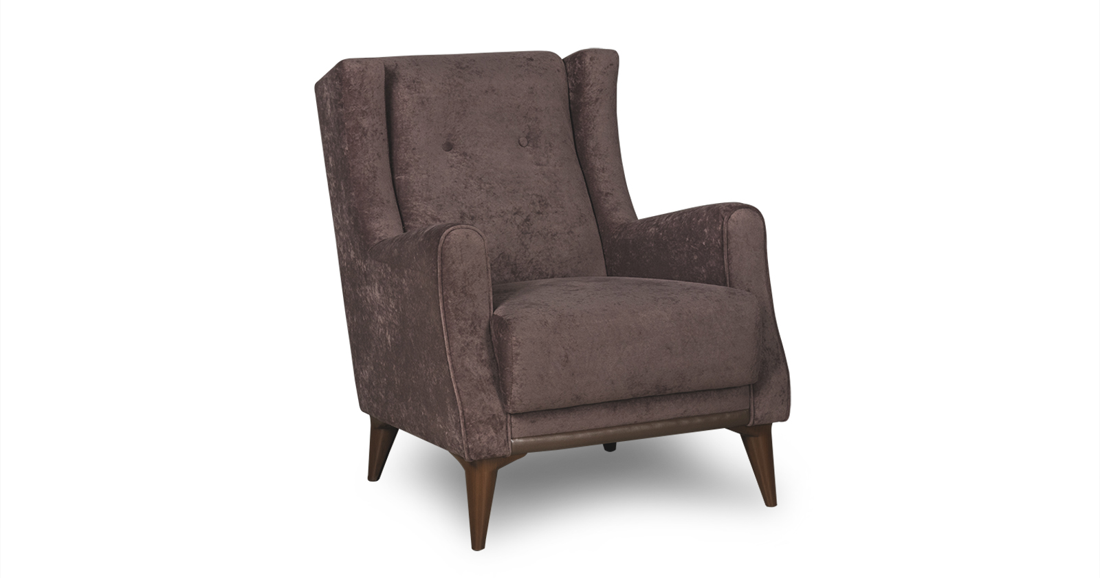 Декоративный кант из основной ткани по переднему торцу подлокотника; Утяжка спинки на 2 декоративные пуговицы из основного материала; Декоративный элемент царги из материала-компаньона.