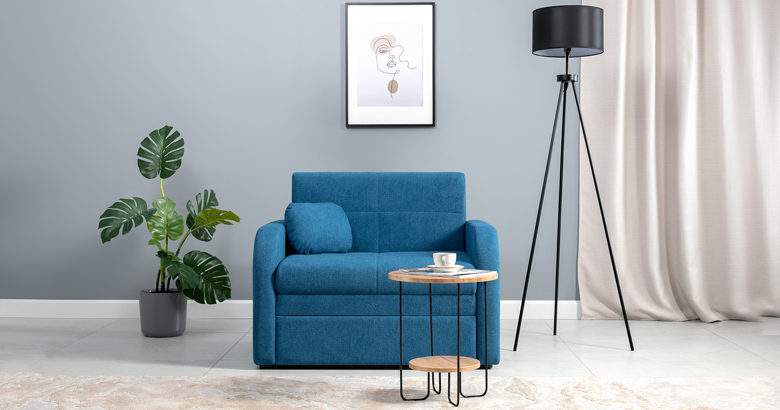 Коллекция выполнена в современном минималистичном стиле с мягкой обивкой из износостойкой ткани и декоративной стежкой, подчеркивающей геометрию форм. Механизм трансформации обеспечивает дополнительное спальное место, делая мебель не только эстетичной, но и максимально функциональной для небольших пространств.