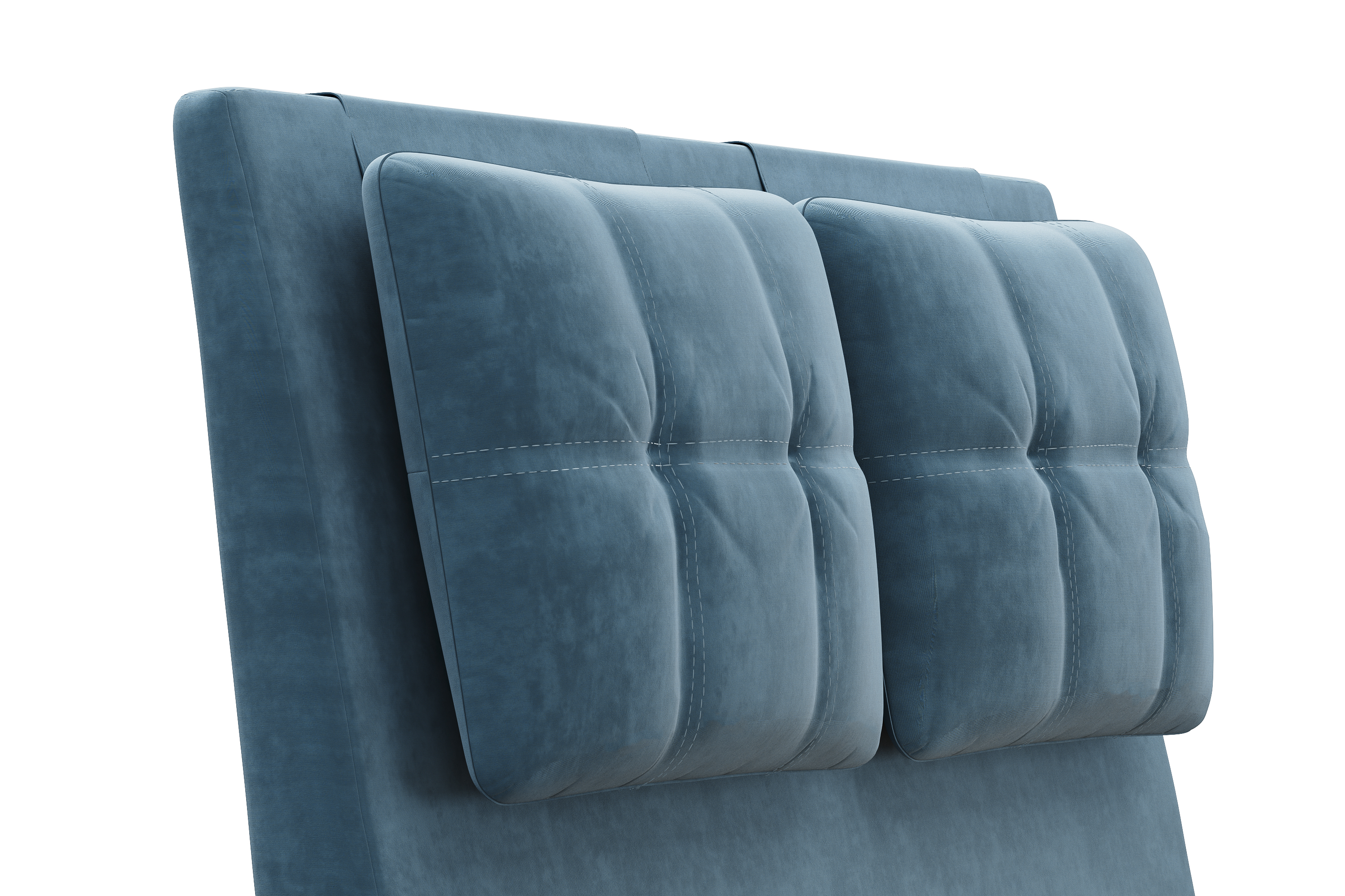 Кровати выполнены в нейтральных и в ярких тканях велюр, что позволяет подобрать подходящий вариант почти под любой интерьер. В качестве декора применяются декоративные подушки на изголовье.