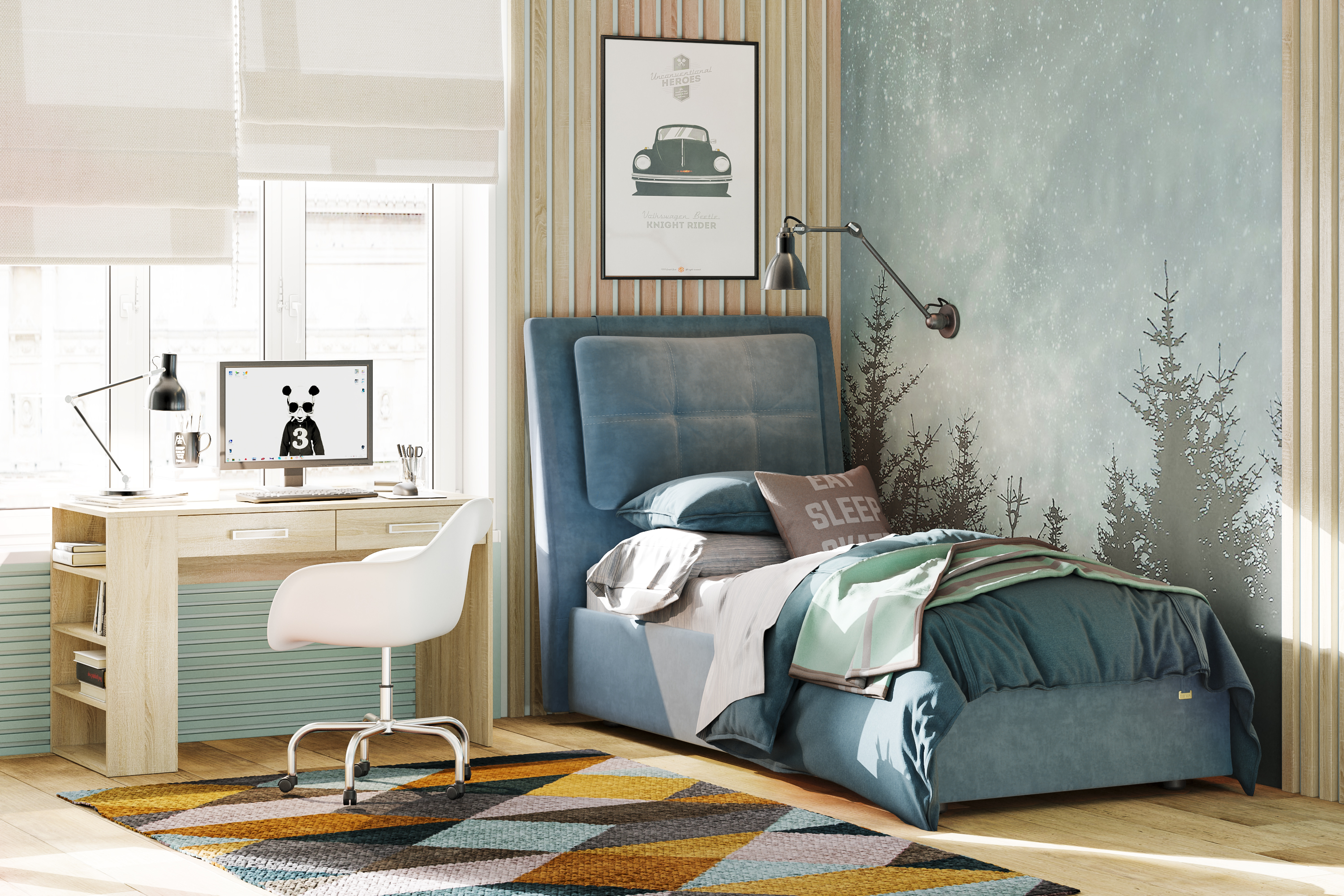 Выбирая кровать для детской, важно учитывать основной момент – она должна быть удобной для сна и отдыха. Кровать «Ester»– отличное решение для детской комнаты. Мягкое изголовье позволяет с комфортом читать книги перед сном, смотреть телевизор. Высокое изголовье с обивкой позволяют повысить шумоизоляцию. Мягкая обивка кровати и отсутствие острых углов помогут избежать травмирования.