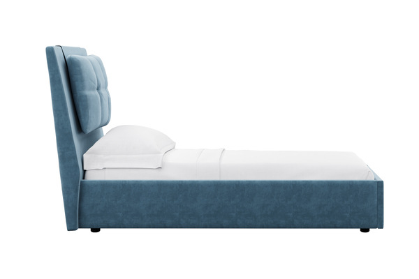 Кровати выполнены в нейтральных и в ярких тканях велюр, что позволяет подобрать подходящий вариант почти под любой интерьер. Изголовье имеет прямоугольную форму, повторяя очертания кровати. В качестве декора применяются декоративные подушки на изголовье.