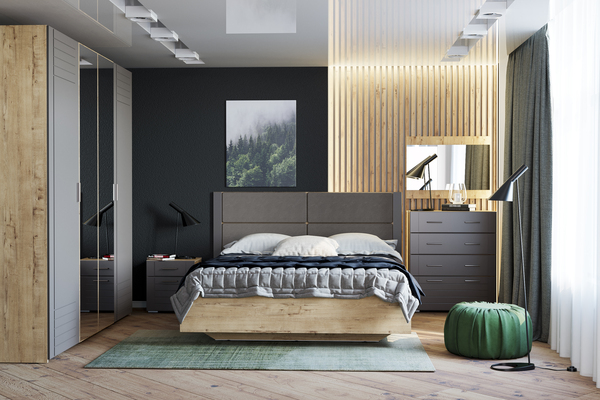 Кровать Livorno 180 с ортопедическим основанием и подъемным механизмом НМ 040.52-01 Х дуб бунратти, софт графит