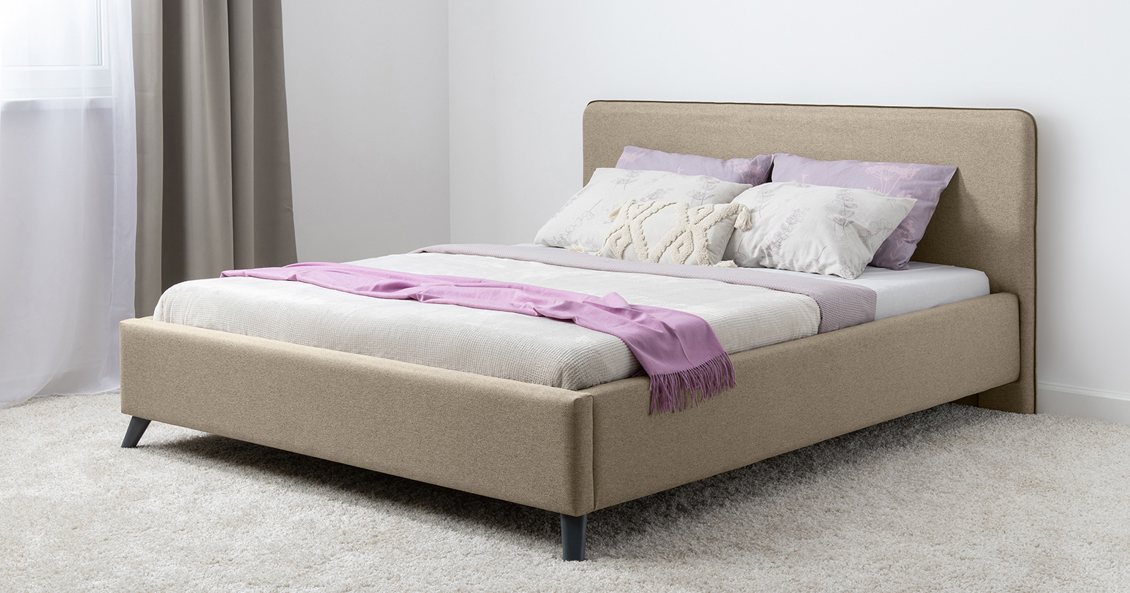 Лаконичный дизайн, гладкая и приятная на ощупь рогожка, широкий выбор пастельных оттенков, высокие опоры — модная кровать МИА порадует сторонников скандинавского стиля.