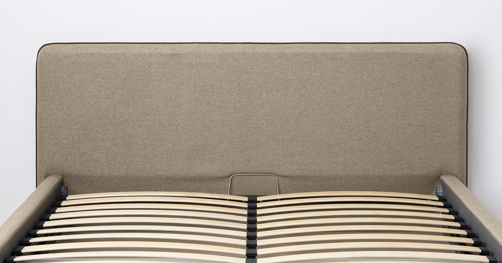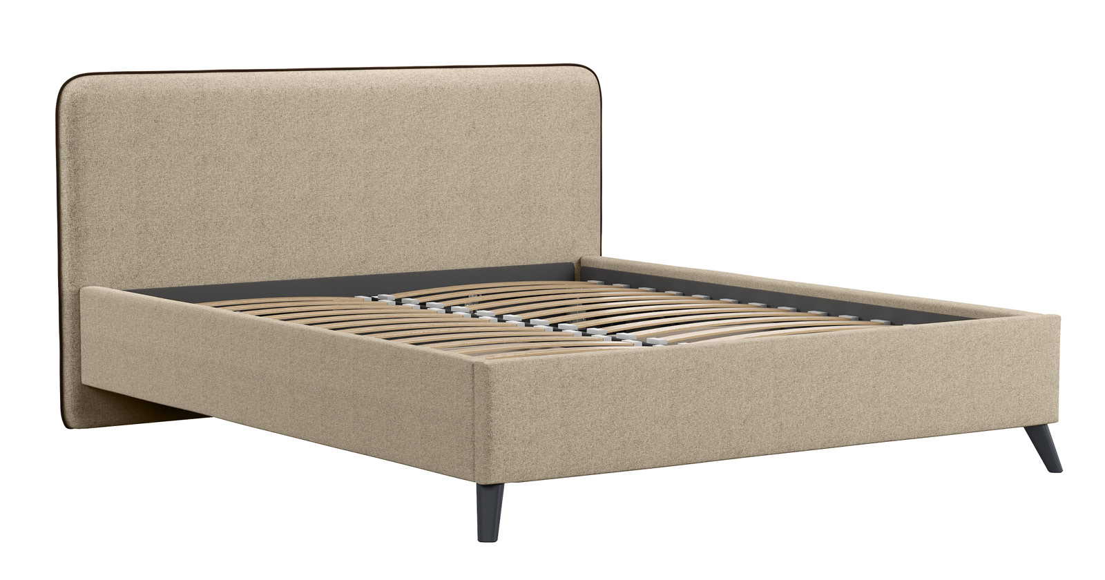 Cкругленный торец изголовья оформлен контрастным кантом.