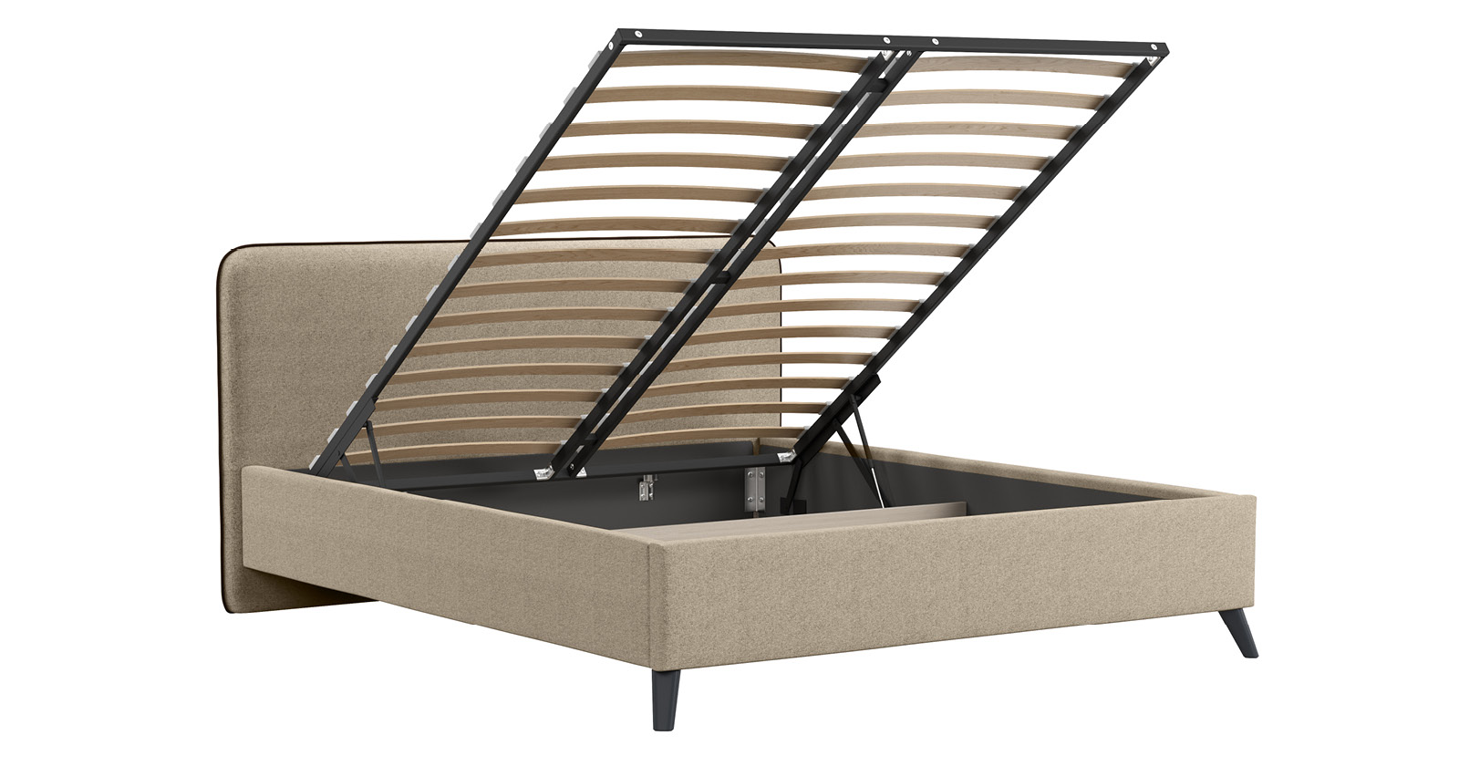 Кровать Миа 160 рогожка светло-бежевый, кант желтовато-коричневый с ортопедическим основанием и подъемным механизмом