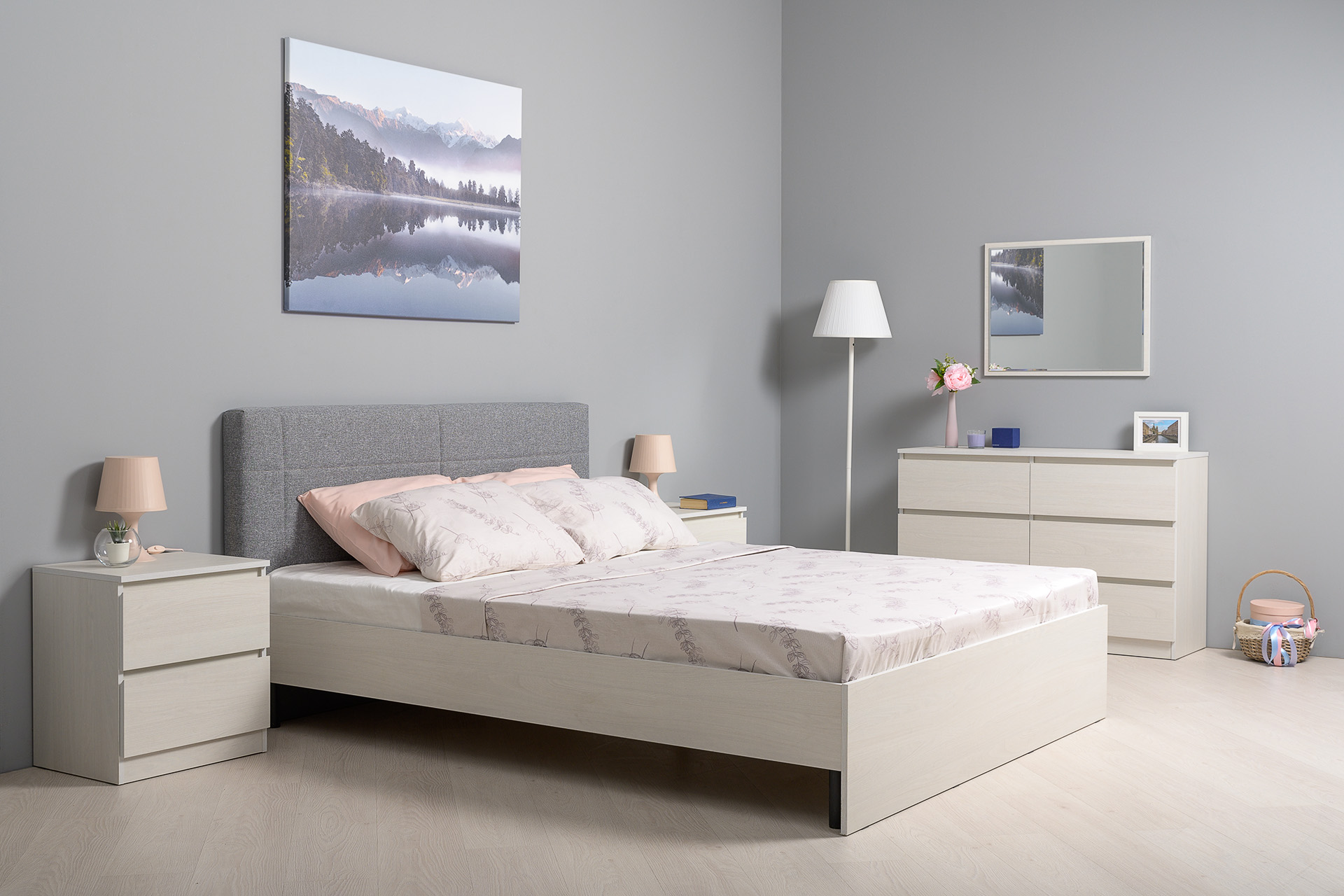 Кровать имеет мягкое изголовье и оснащается ортопедическим основанием.