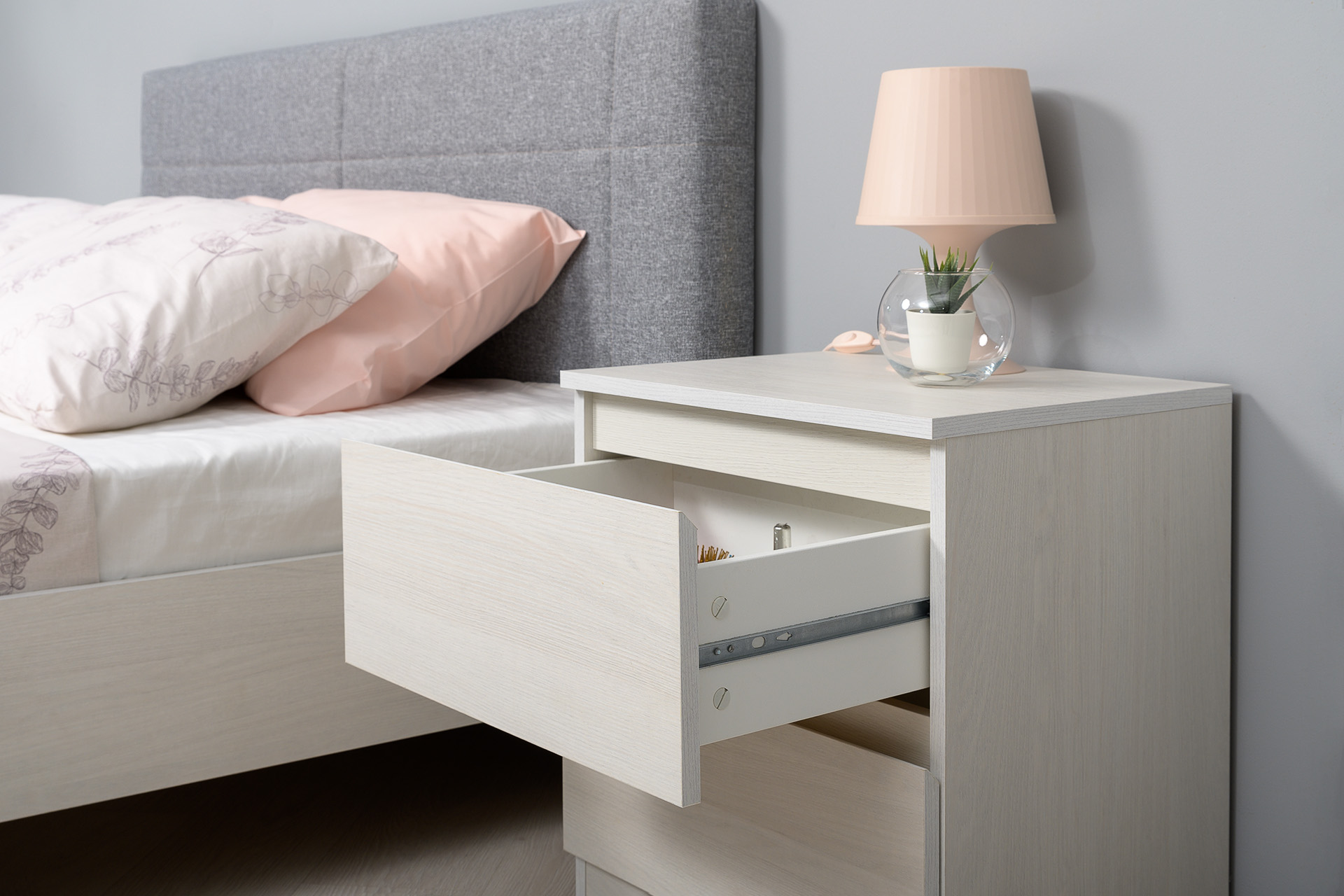 Светлая и лёгкая спальня в утилитарном современном стиле.