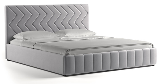 Изголовье кровати имеет элемент с мягкой обивкой, что придает ей элегантность и комфорт. Кровать с оригинальным парящим эффектом не только обеспечивает крепкий сон, но и облегчает уборку в комнате. Кровать оснащена также встроенным ящиком для белья, что позволяет оптимизировать место хранения.