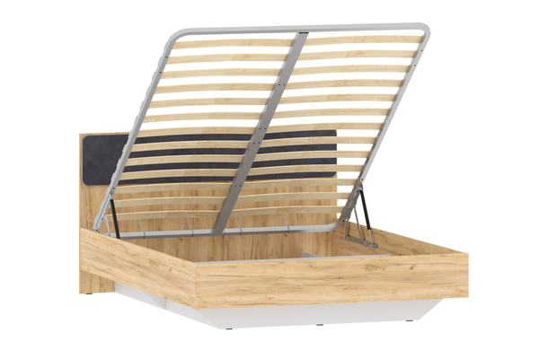 Кровать Оттавия НМ 011.56 с ортопедическим основанием и подъемным механизмом, велюр ультра графит, дуб крафт золотой, белый фасадный (спальное место 160 х 200)