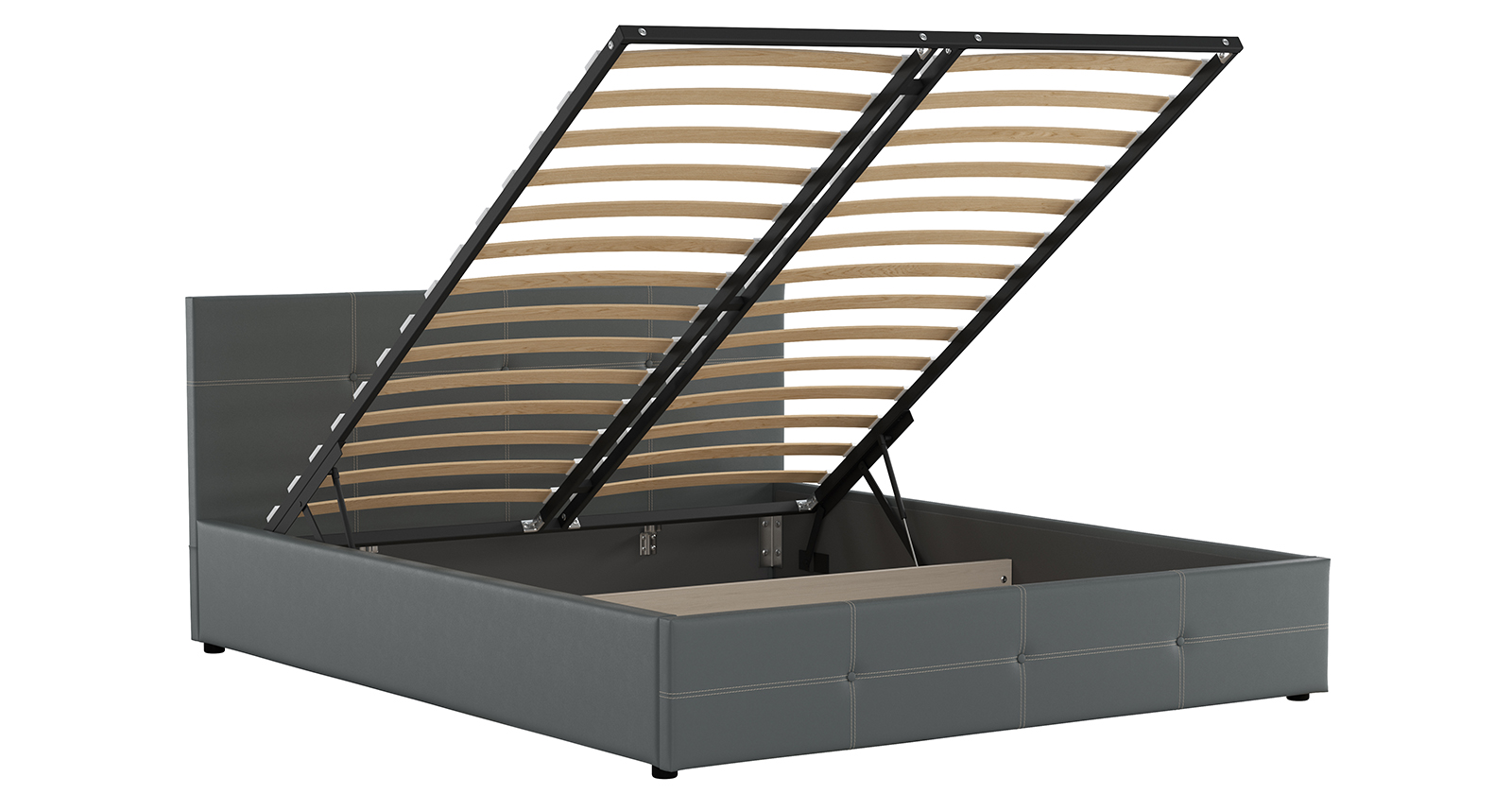 Кровать Синди 160 экокожа серый с ортопедическим основанием и подъемным механизмом