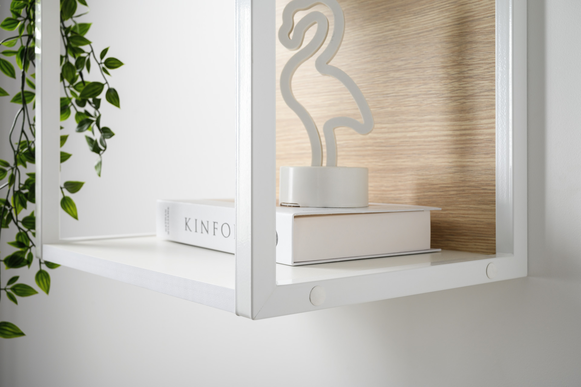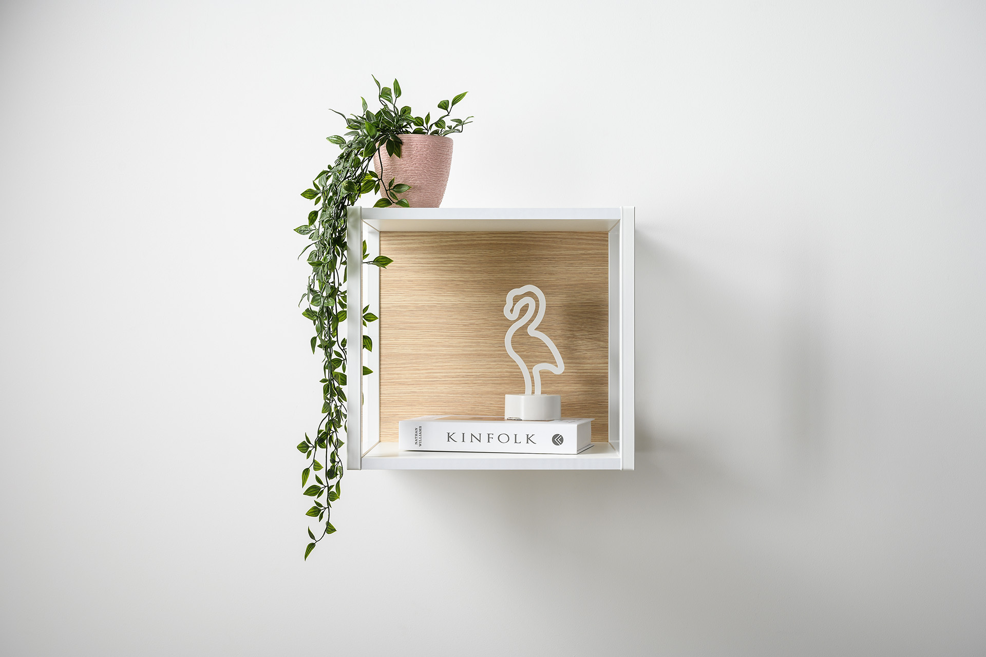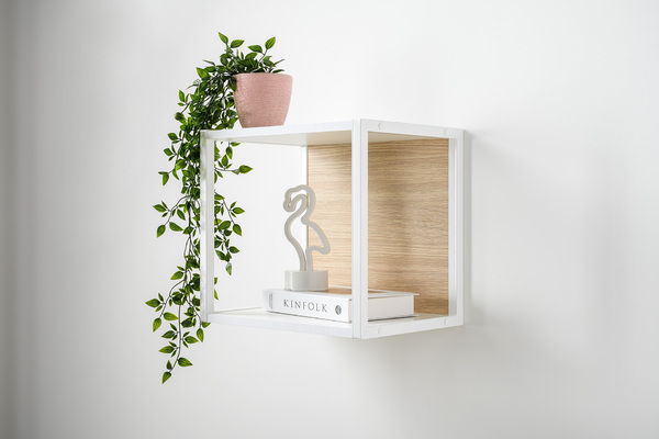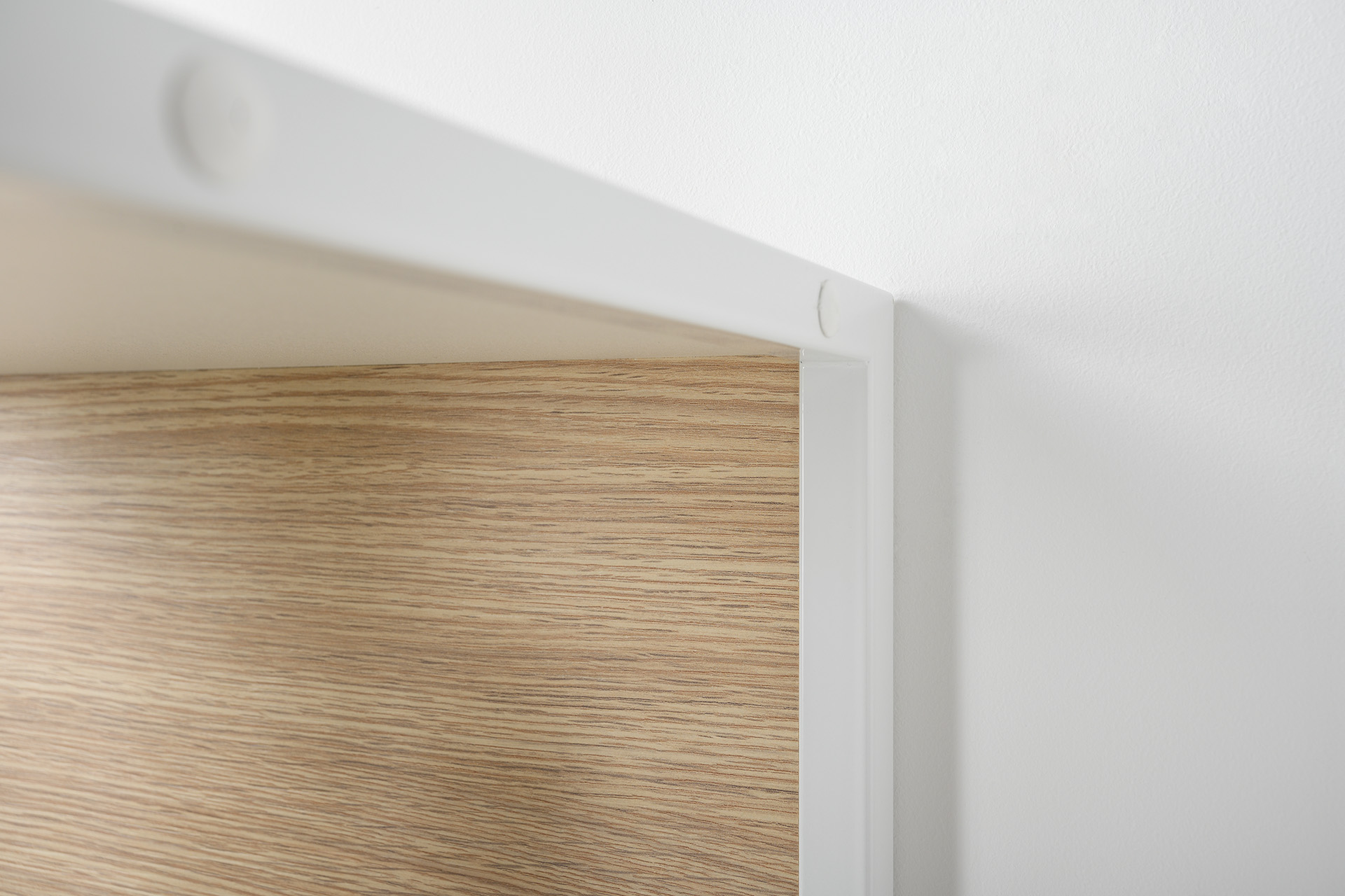 Полка навесная в гостиную Альба 2 10.121 дуб эндгрейн элегантный, белый PE шагрень