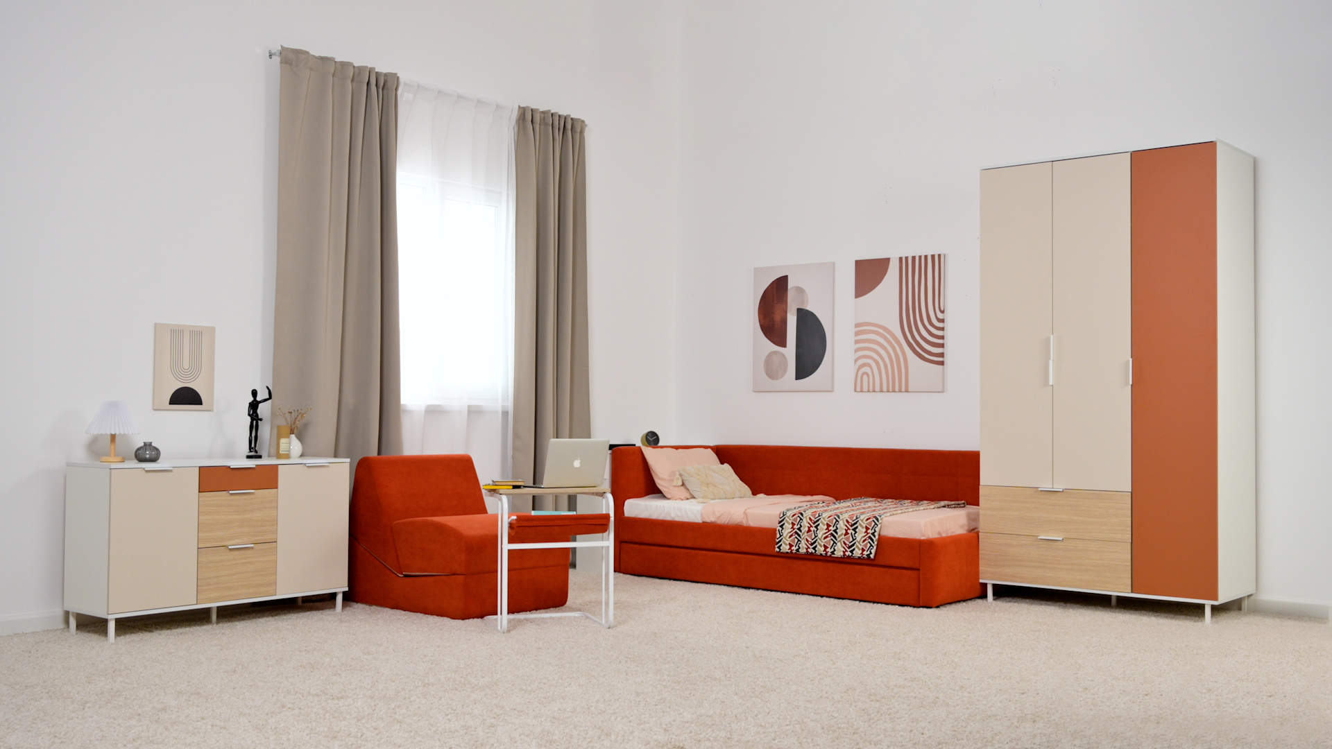 Кровать одинарная Марвэл 90 EPIC TERRA (терракотовая) с ортопедическим основанием (универсальная сборка)