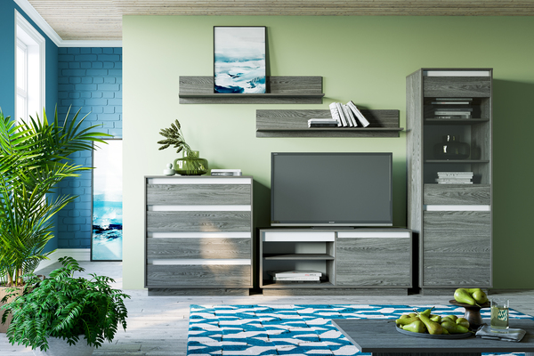 Полка навесная в гостиную Альба 2 10.121 дуб эндгрейн элегантный, белый PE шагрень