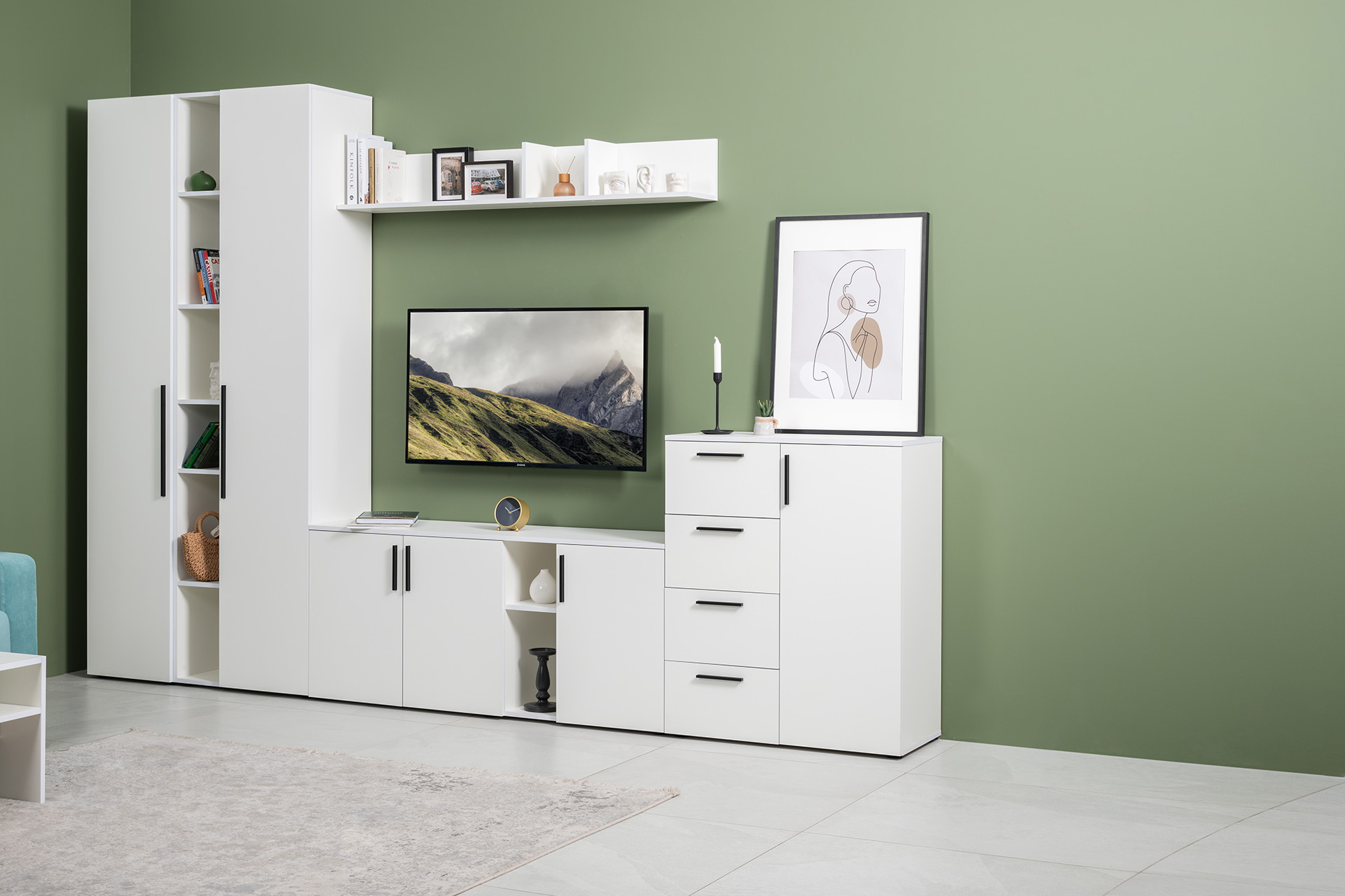 Тумба под ТВ Эйр 16.55 белый PE шагрень, собирается на любую сторону