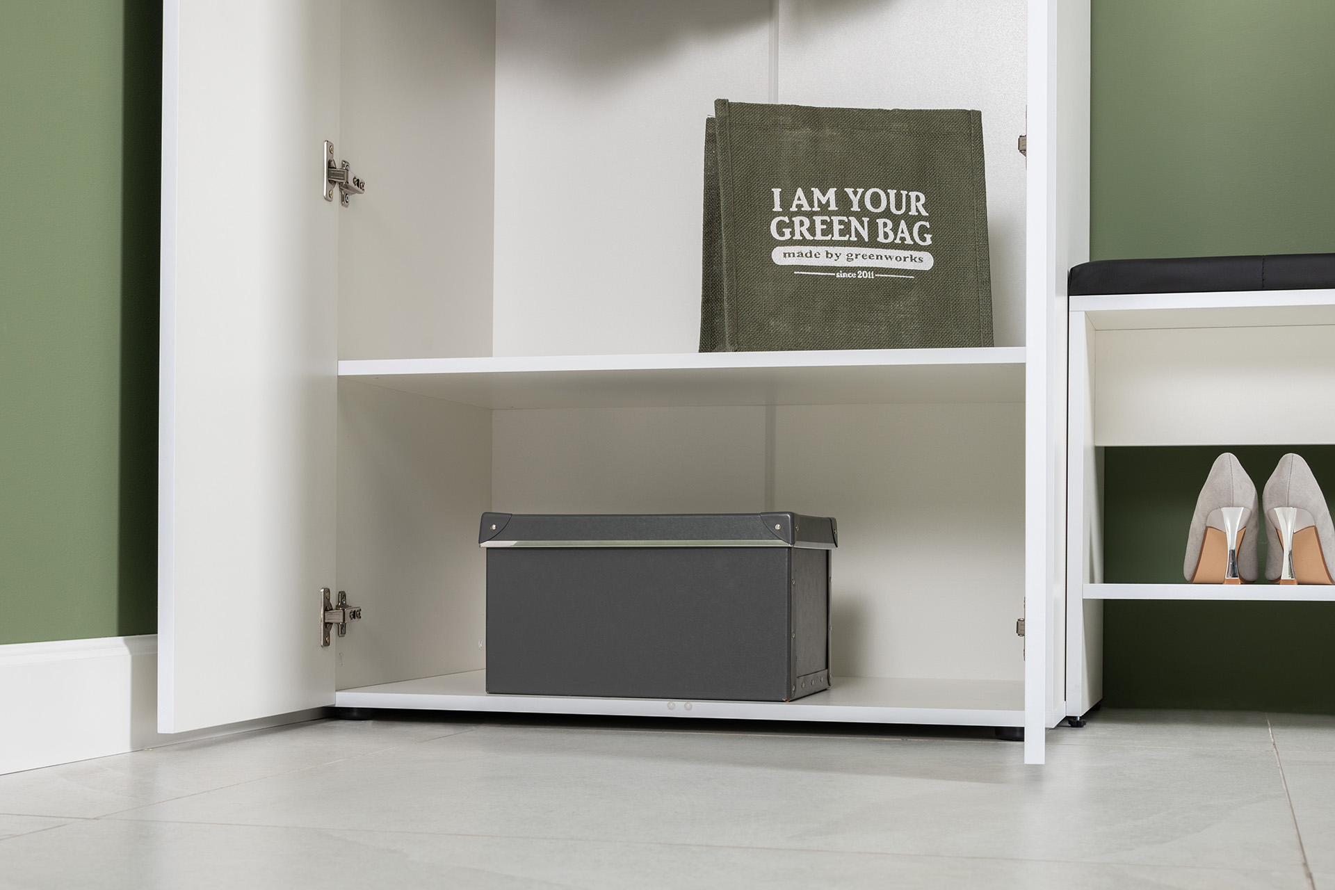 Тумба для обуви Эйр 16.130 белый PE шагрень, кожзам HOLST black