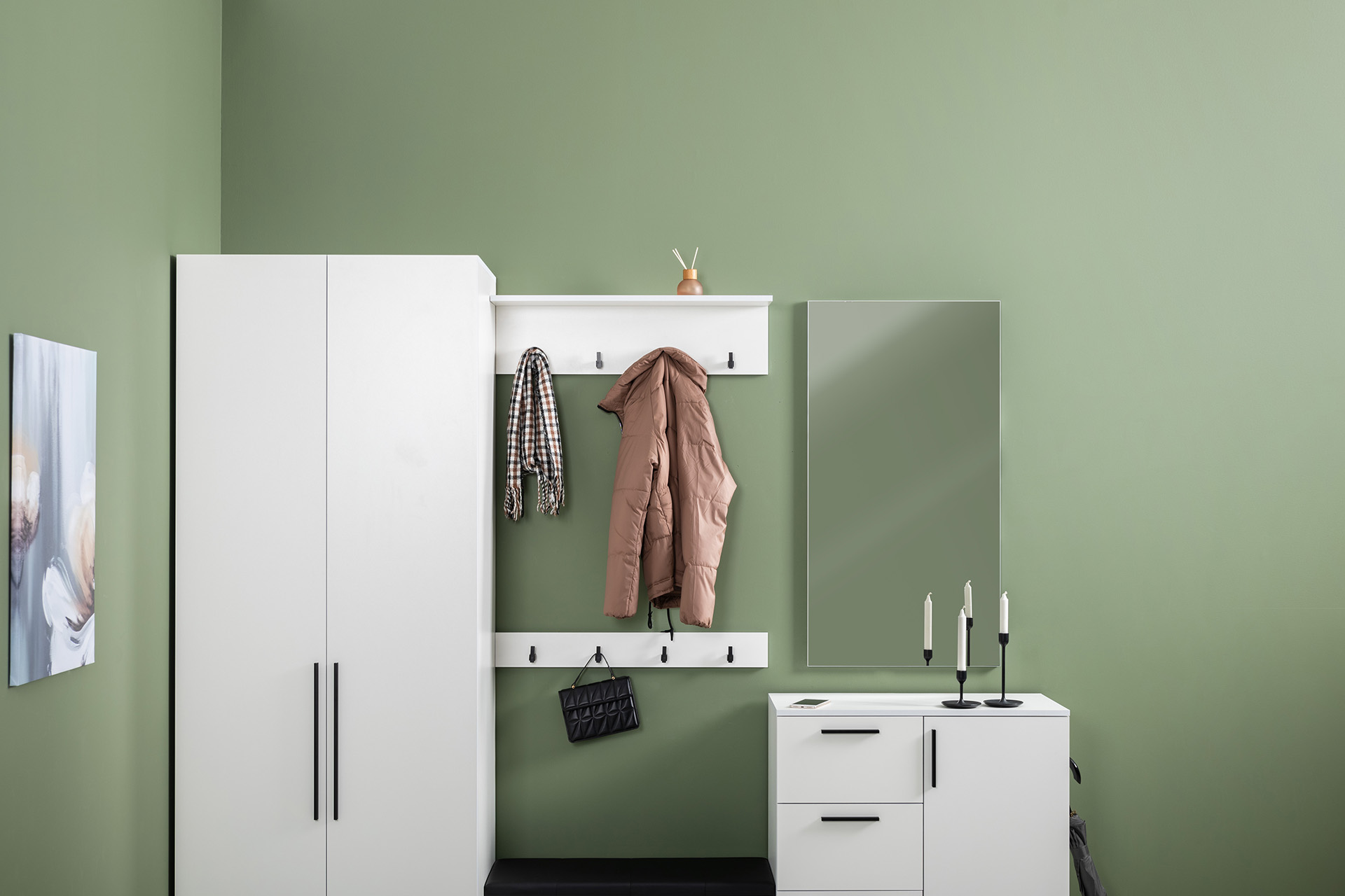 Прихожая Эйр композиция 1 белый PE шагрень, собирается на любую сторону