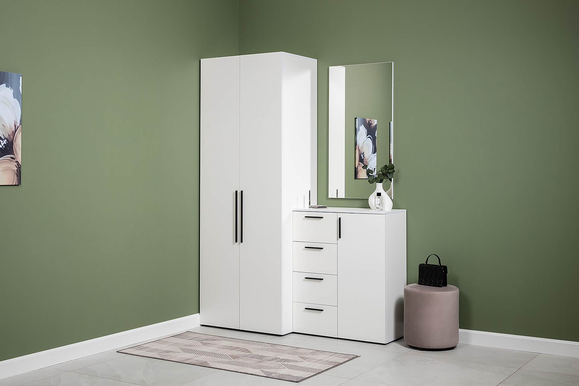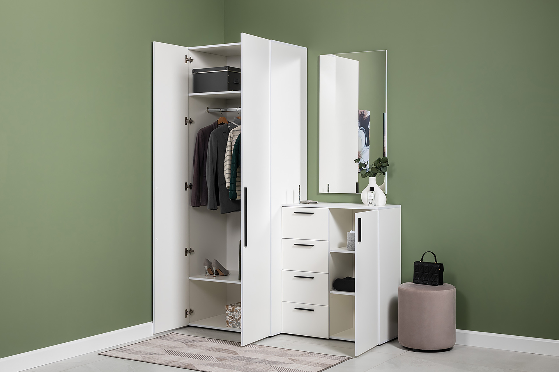 Прихожая Эйр композиция 2 белый PE шагрень, собирается на любую сторону