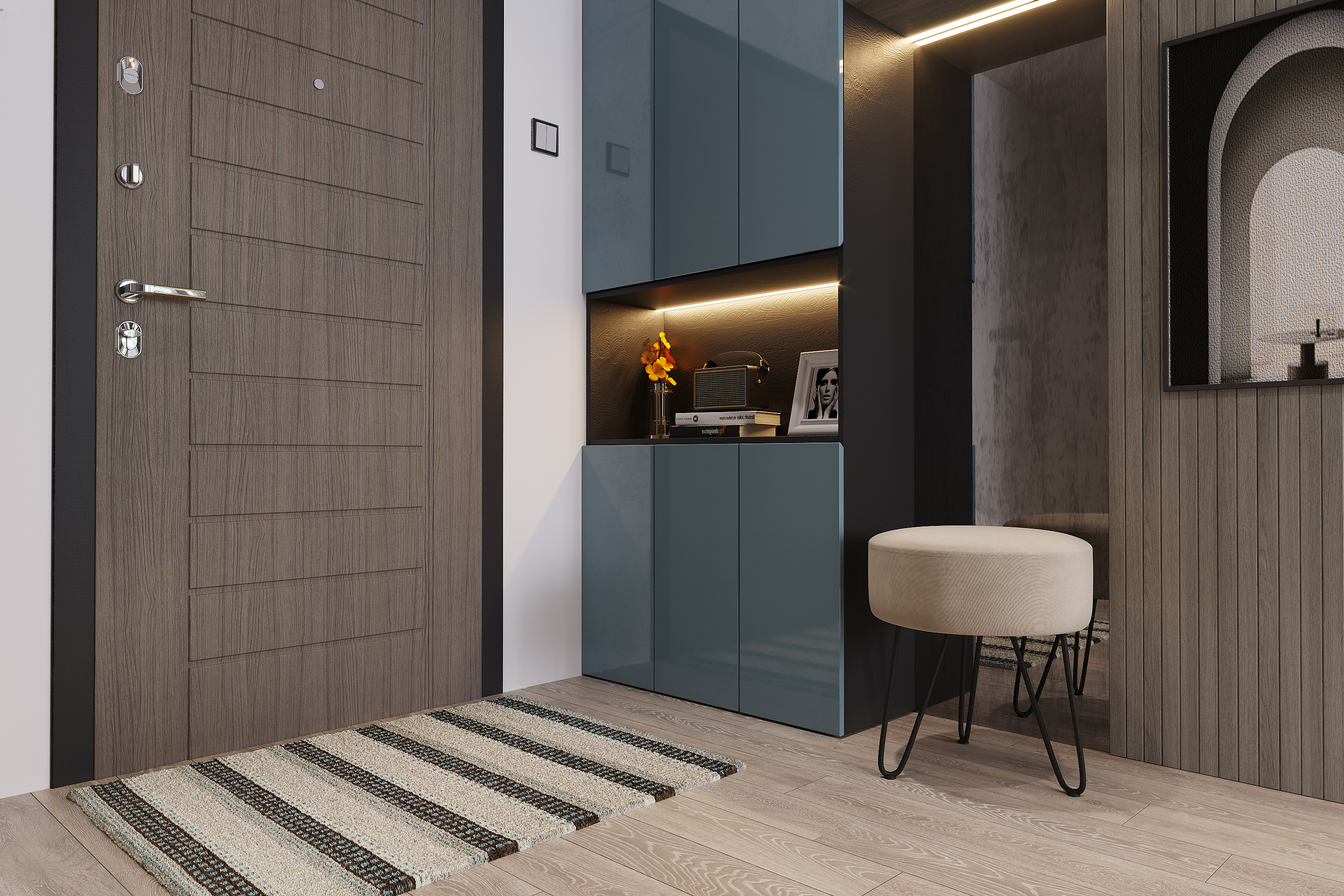 Интерьерные пуфы Берг созданы для того, чтобы использование прихожей проходило максимально комфортно. Такой предмет интерьера не только окажется украшением комнаты, но и позволит разместить на нем вещи, такие как зонтик, или присесть для надевания обуви.